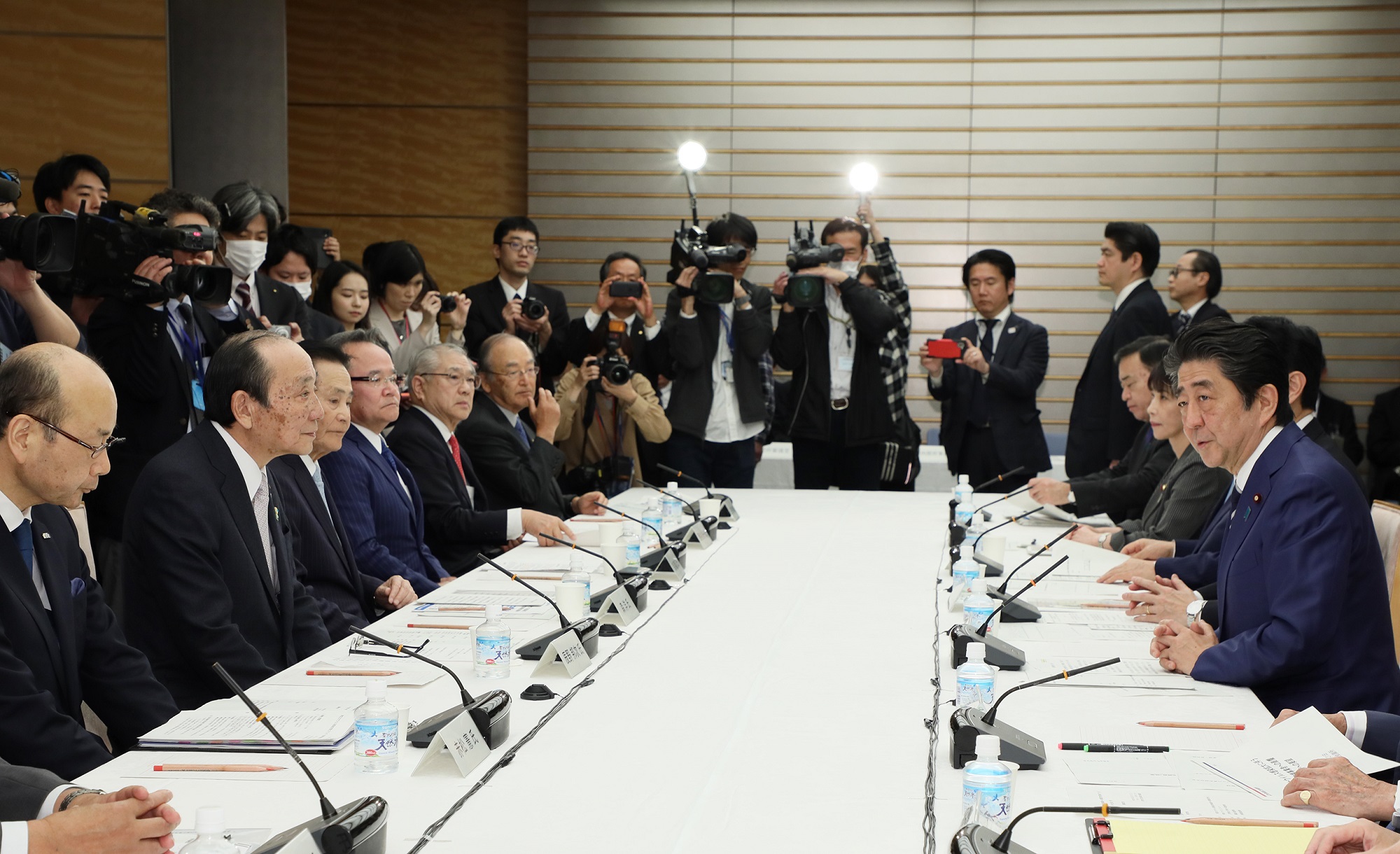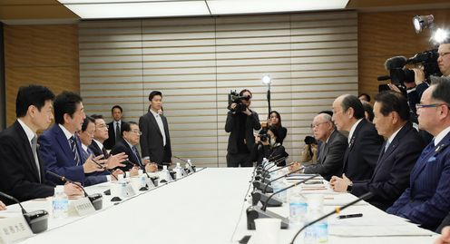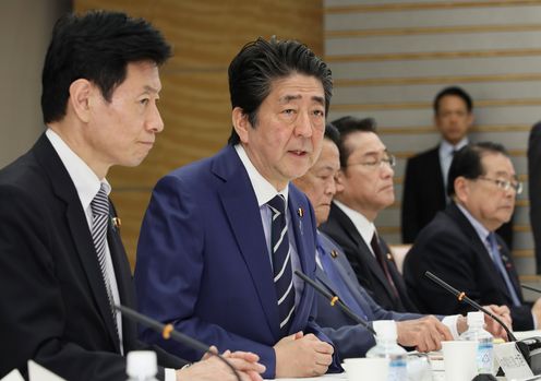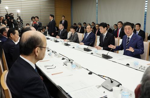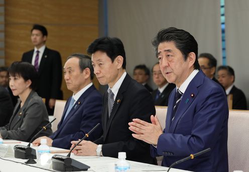安倍总理在总理大臣官邸出席了第3次有关新型冠状病毒感染症对实体经济影响情况的集中听取会议。