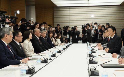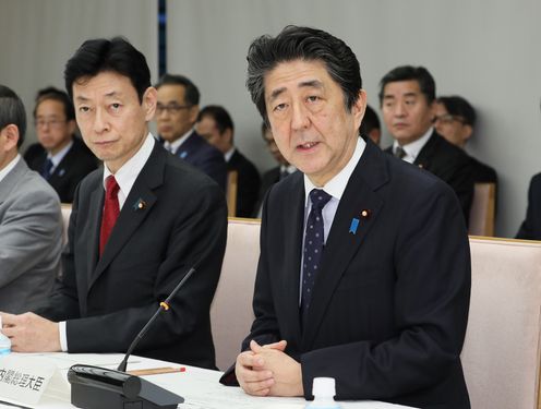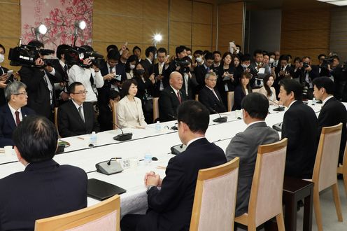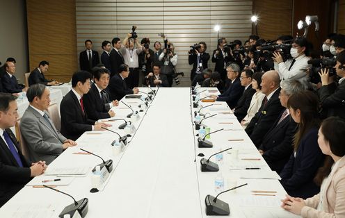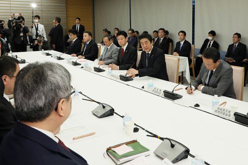 安倍总理在总理大臣官邸出席了第1次有关新型冠状病毒感染症对实体经济影响情况的集中听取会议。