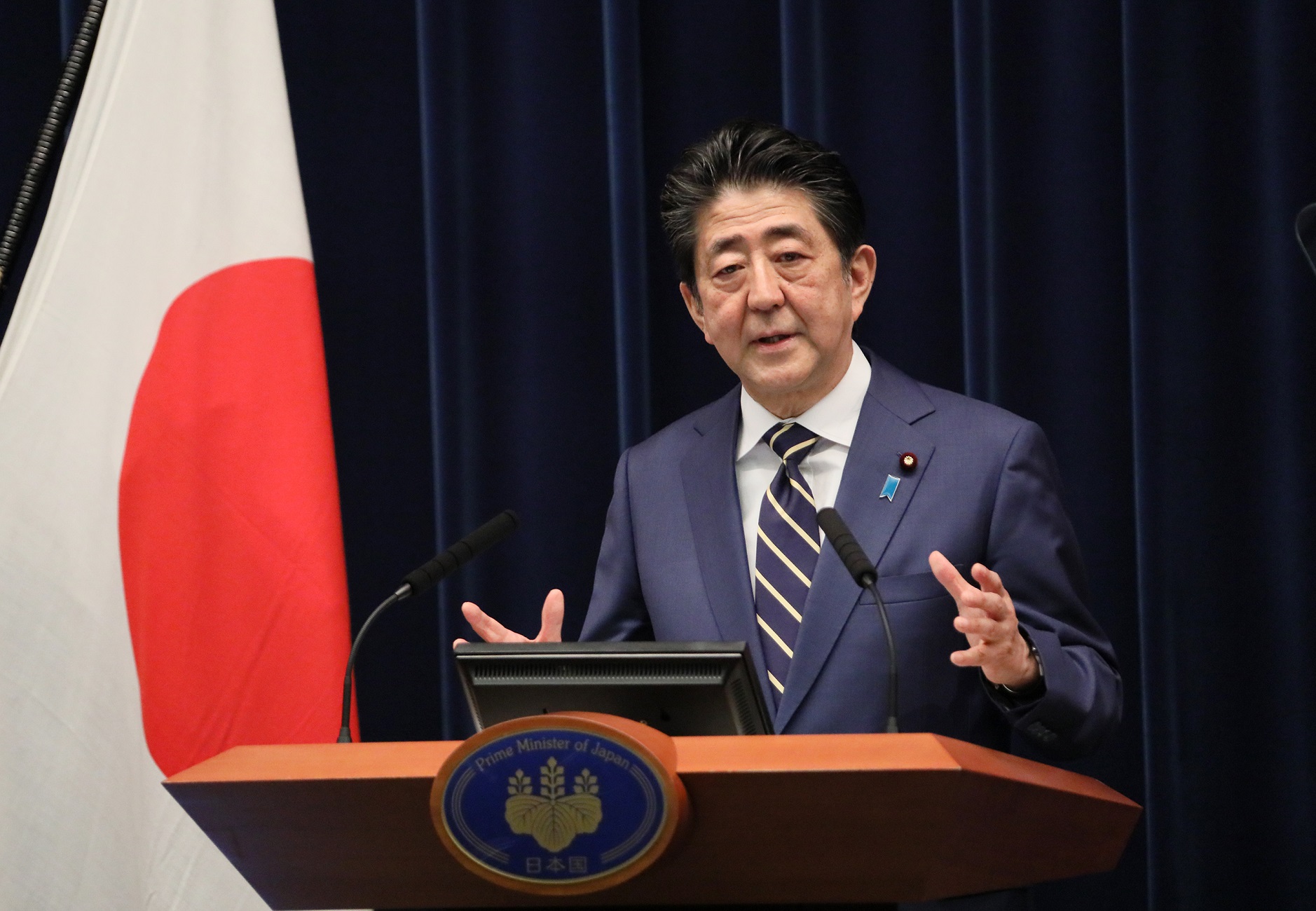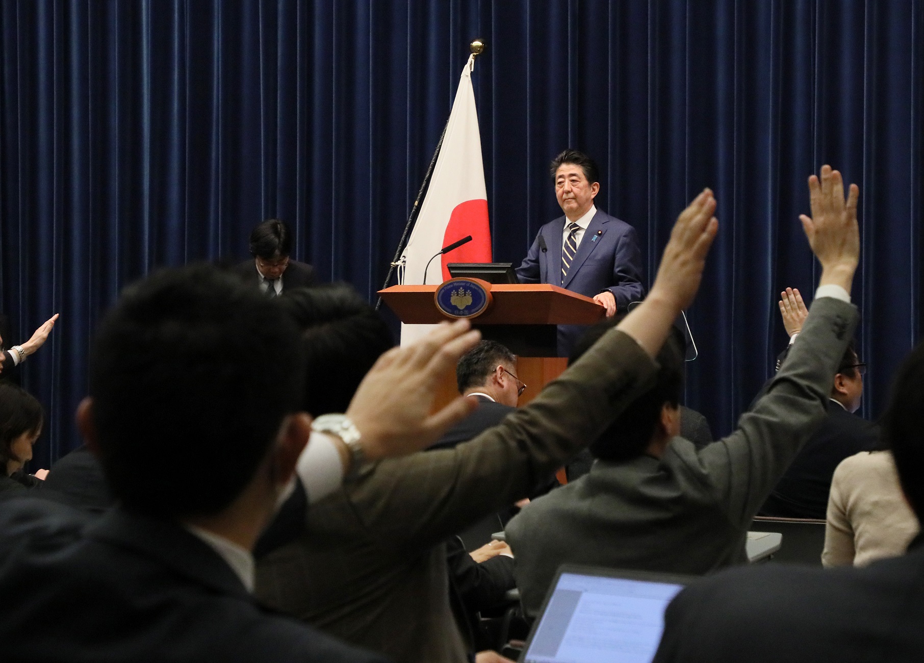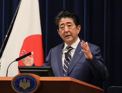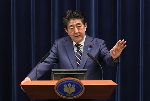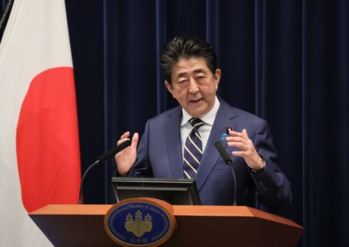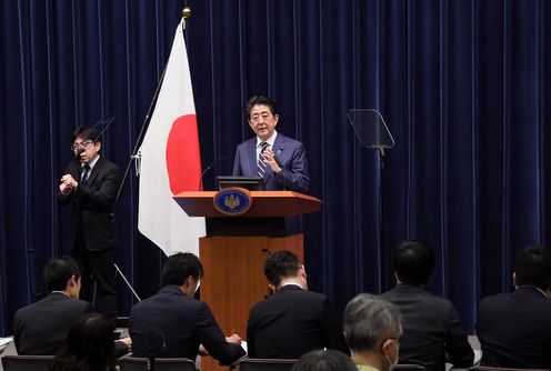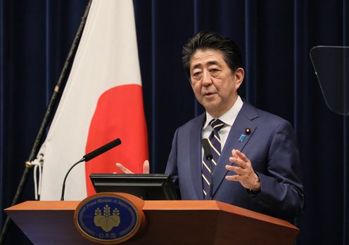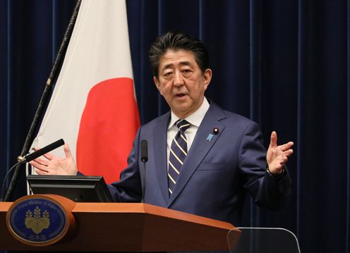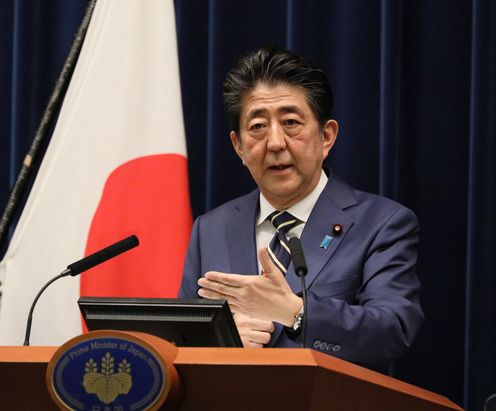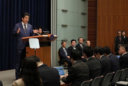 安倍总理在总理大臣官邸举行了记者招待会。