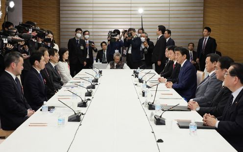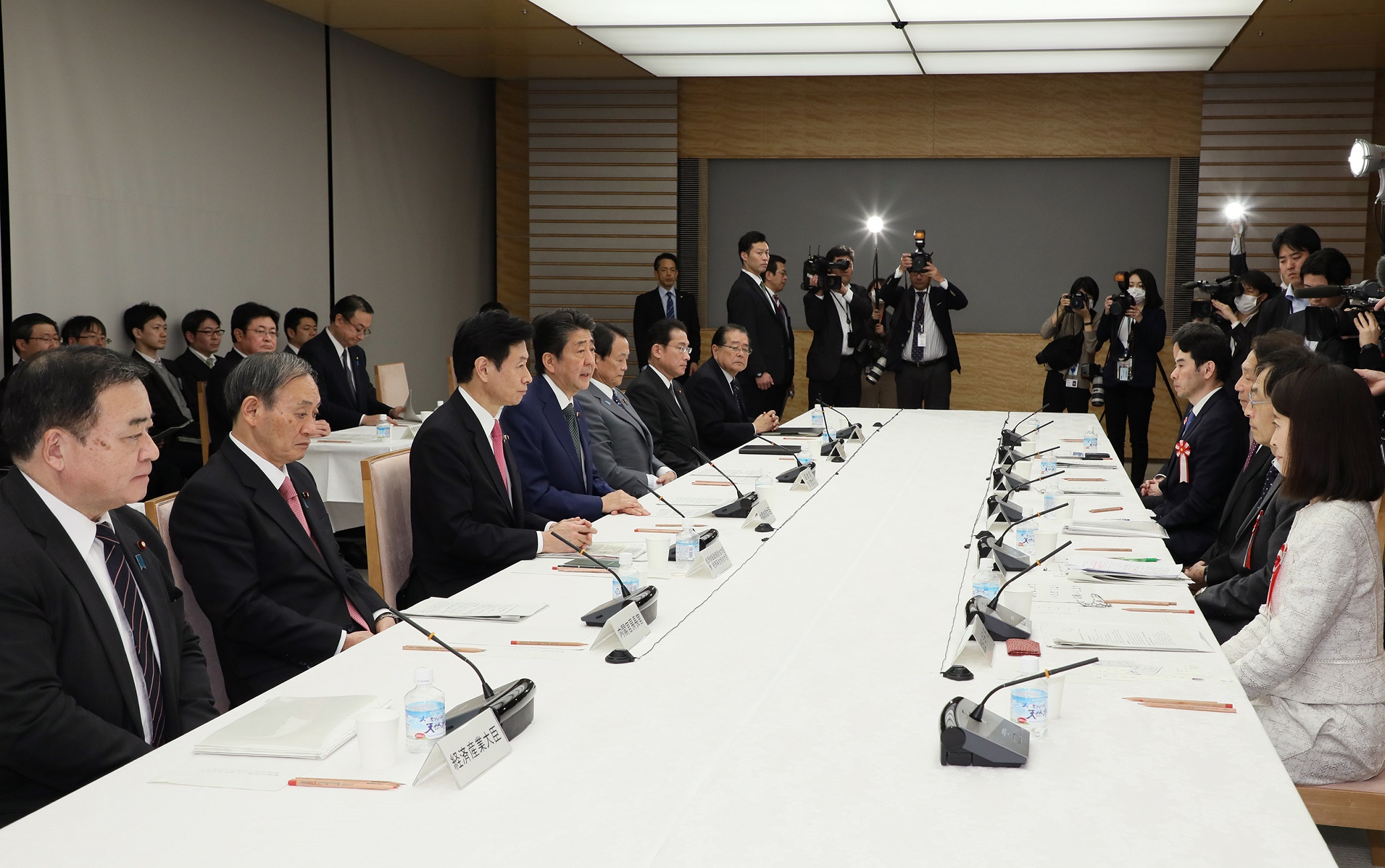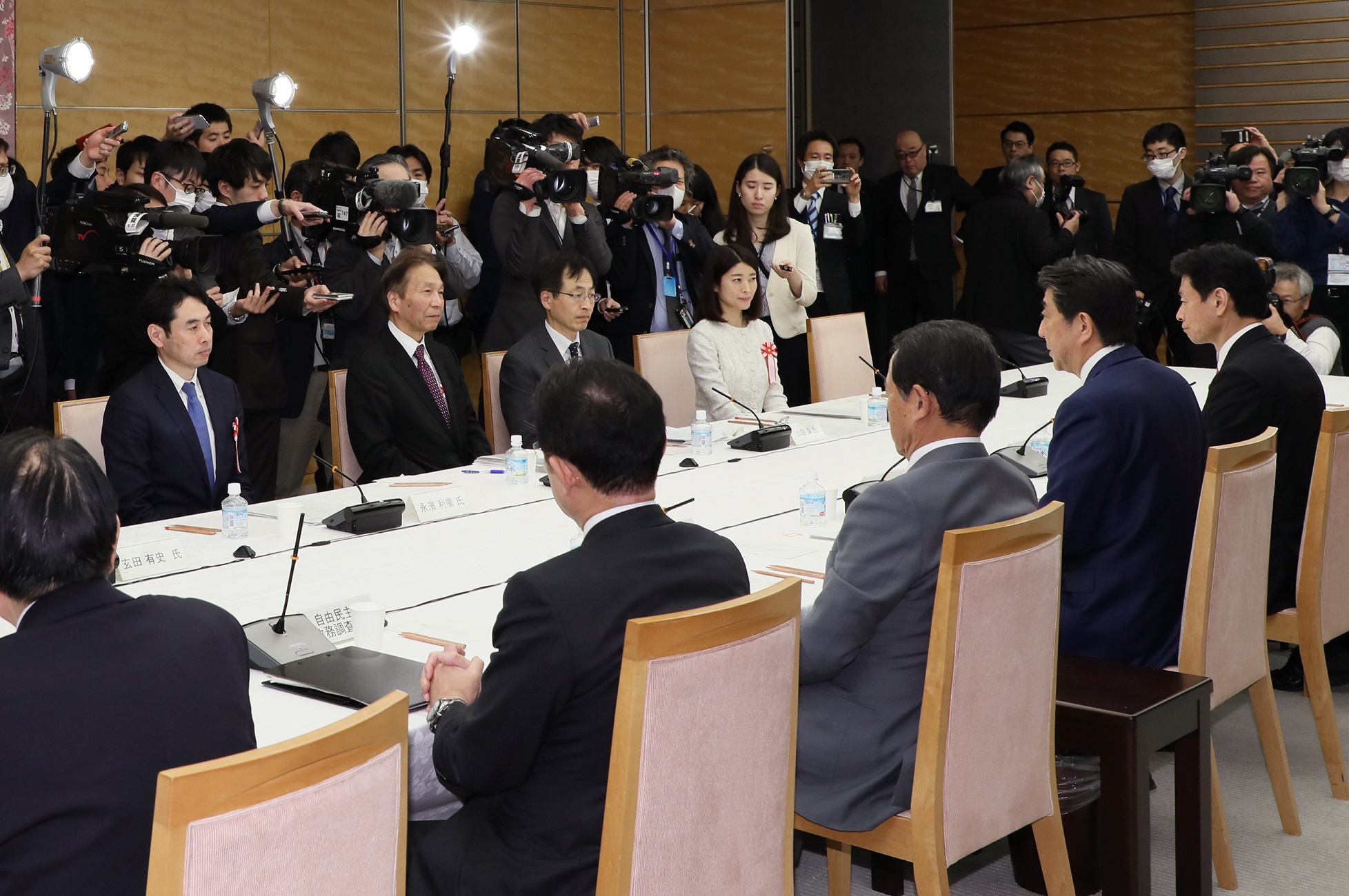 安倍总理在总理大臣官邸出席了第7次有关新型冠状病毒感染症对实体经济影响情况的集中听取会议。