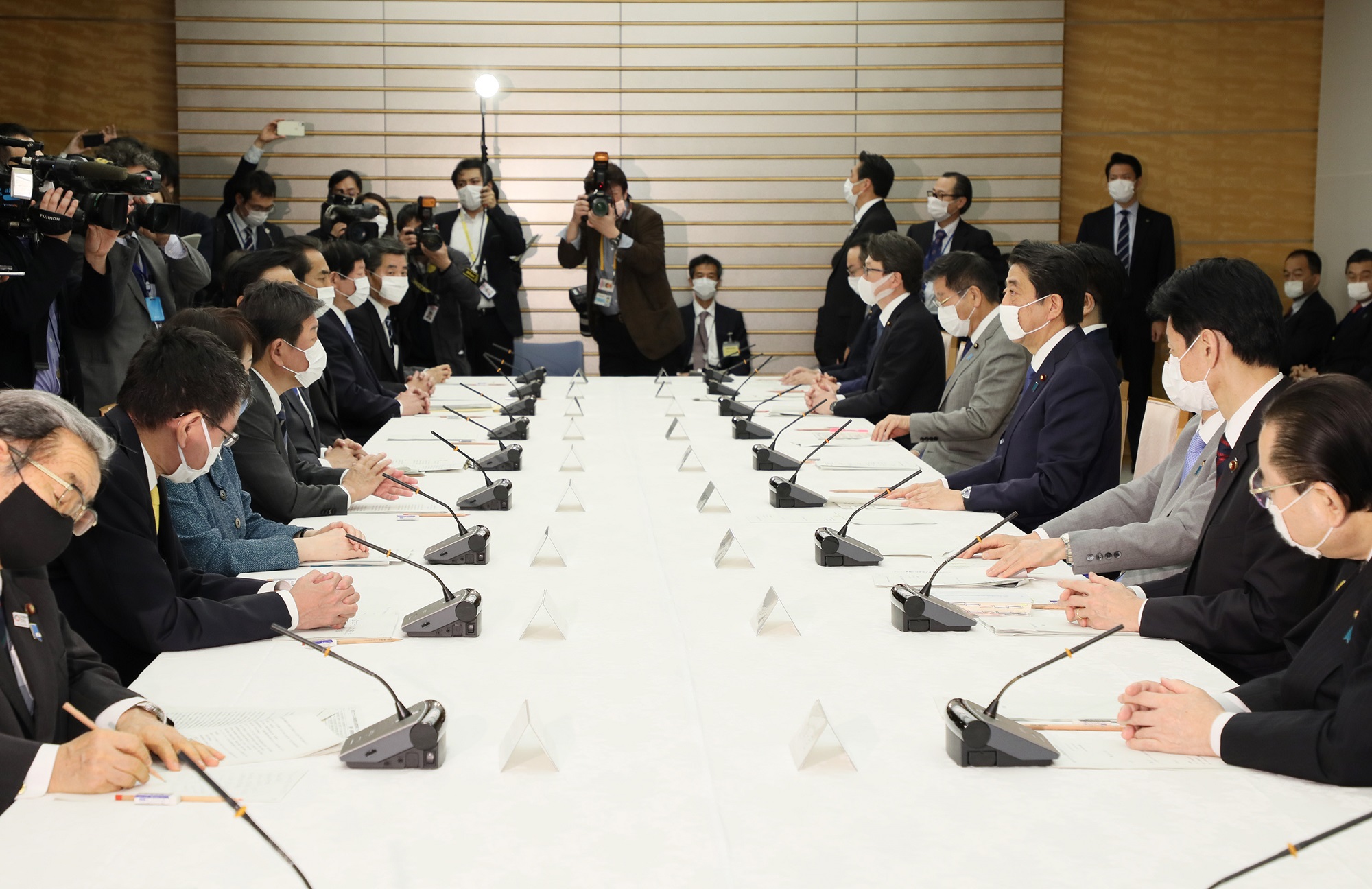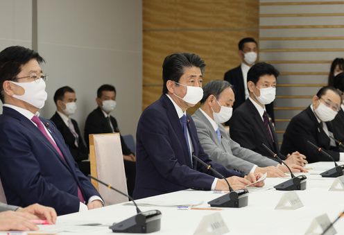 包括这些措施在内的紧急经济对策规模将达到有史以来最高的108万亿日元。国民生产总值(GDP)20%这样的规模,与各国相比也是相当果断的措施。为了使补正预算迅速通过,以及纳入对策措施的迅速执行,请各位大臣全力以赴。”