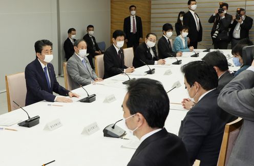 2020年4月6日,安倍总理在总理大臣官邸召开了第26次新型冠状病毒感染症对策本部会议。会议对如何应对新型冠状病毒感染症进行了讨论。