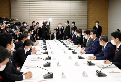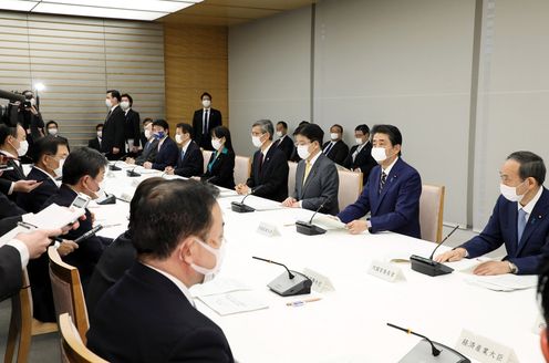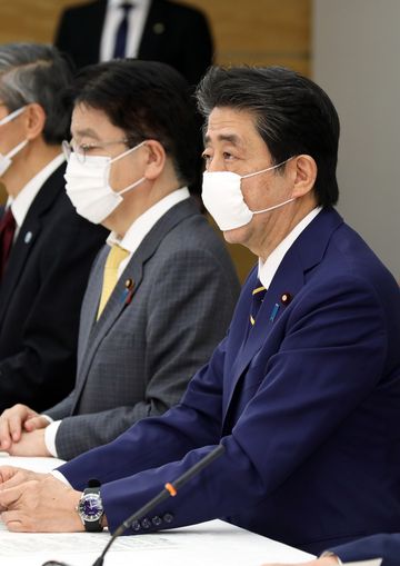 在这个国家性的危机之际,政府将保护国民的生命与健康放在第一位,在与都道府县紧密合作的同时,推进防止疫情扩大的措施。请各位今后也基于基本应对方针,举全力推进对策。”