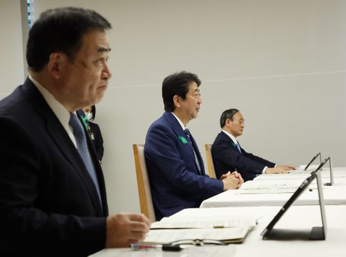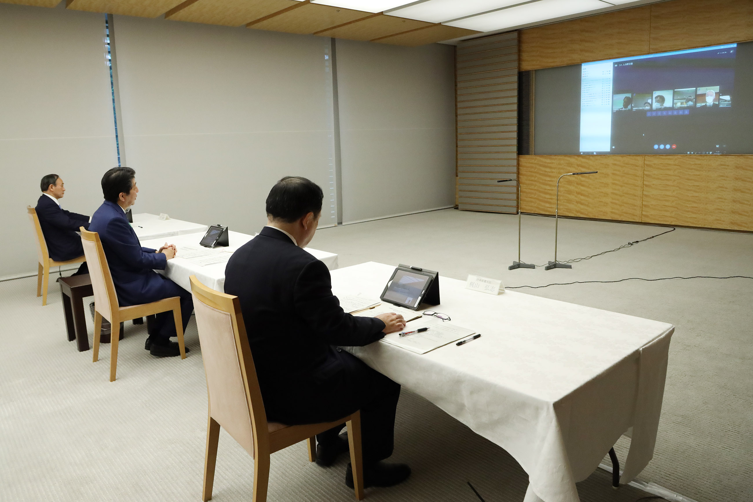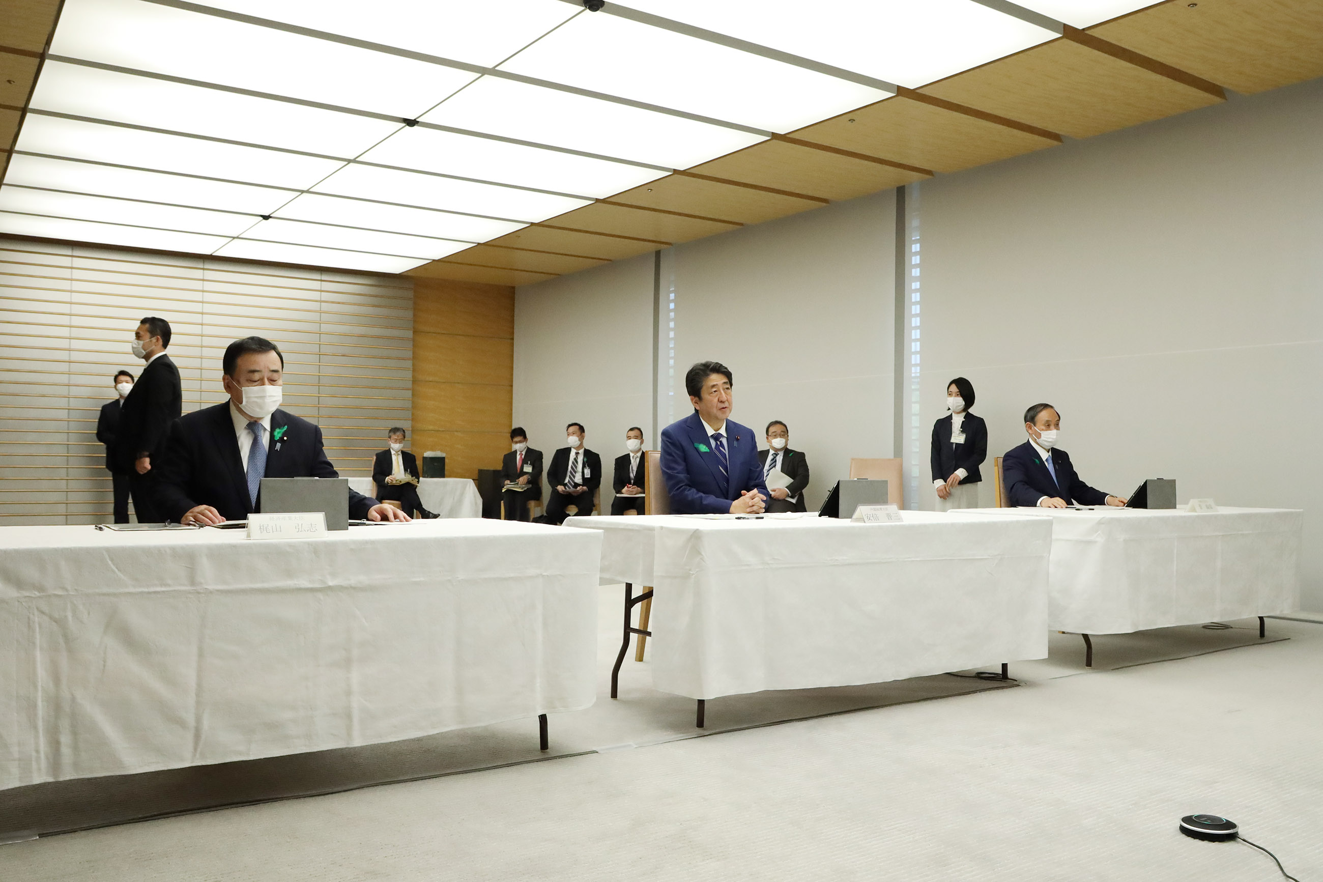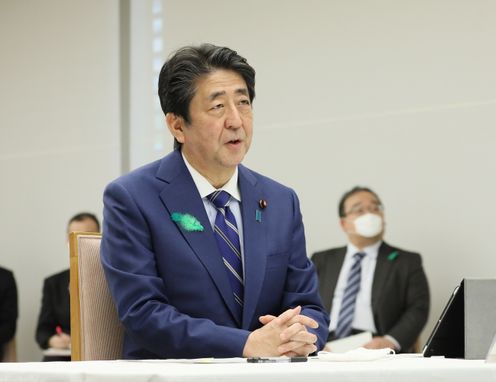 安倍总理在总理大臣官邸与医疗防护用品等的增产贡献企业进行了恳谈。
