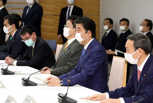 2020年4月27日,安倍总理在总理大臣官邸召开了第32次新型冠状病毒感染症对策本部会议。