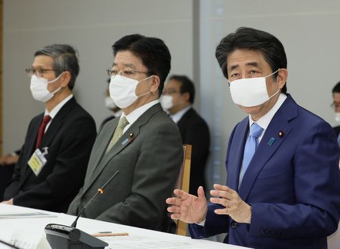 我国迄今为止的对策,与都道府县密切合作,并在国民们的极大配合下,毫无疑问取得了成果。请各位基于今天修订的基本应对方针,继续为推进对策全力以赴。”