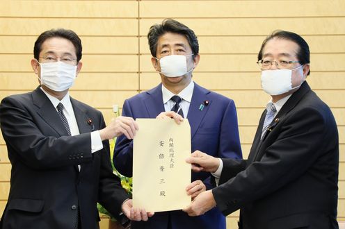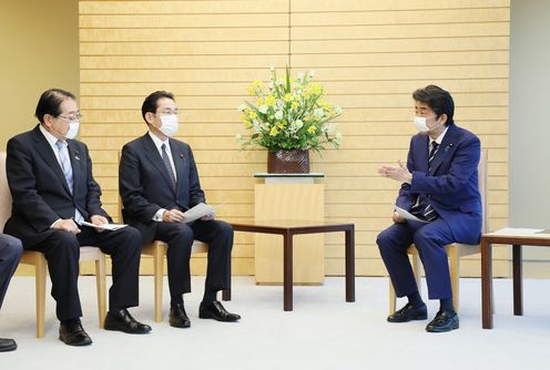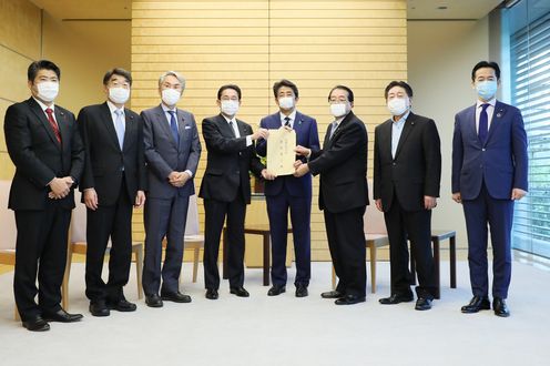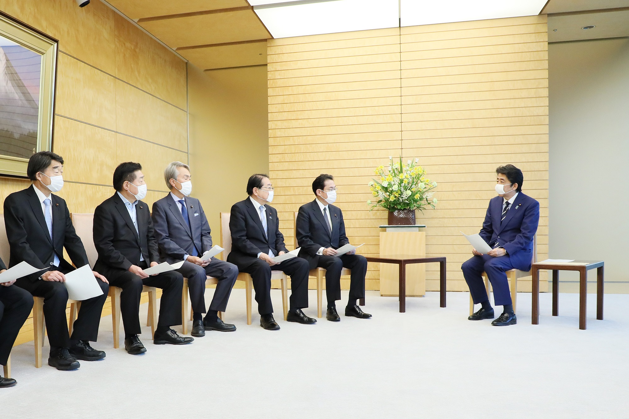 安倍总理在总理大臣官邸接收了执政党有关房租支援的建议。