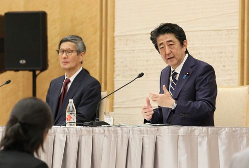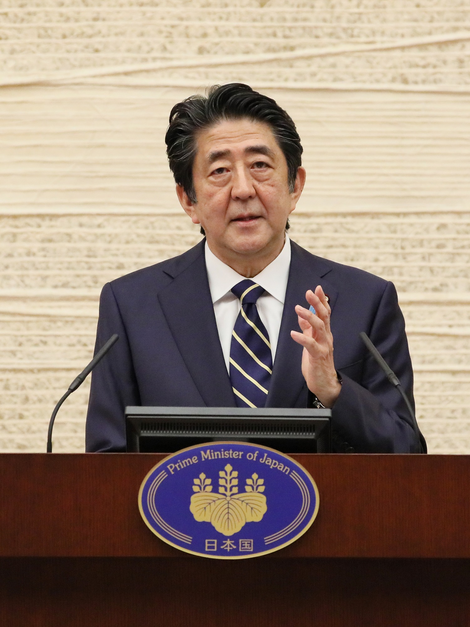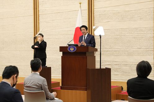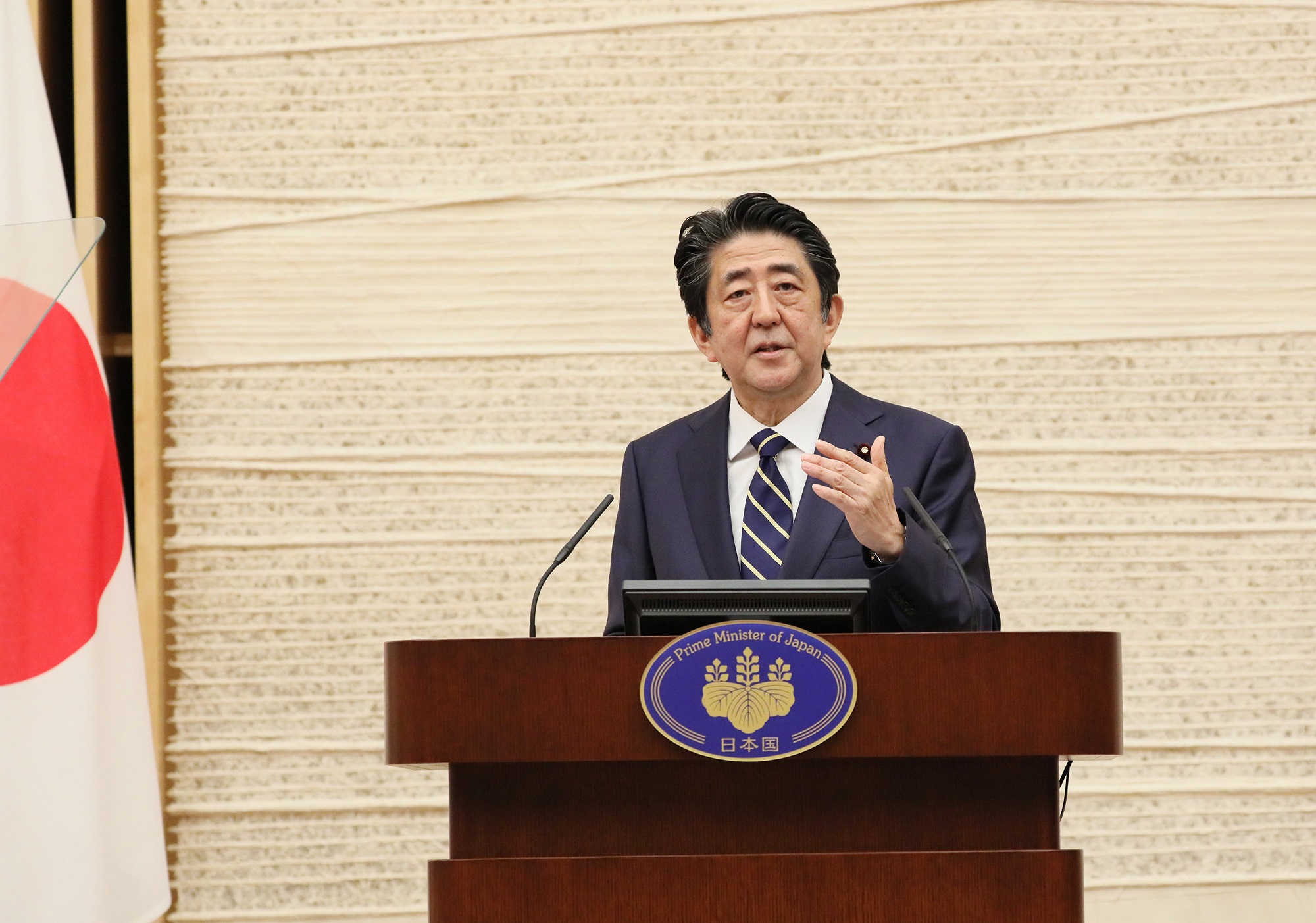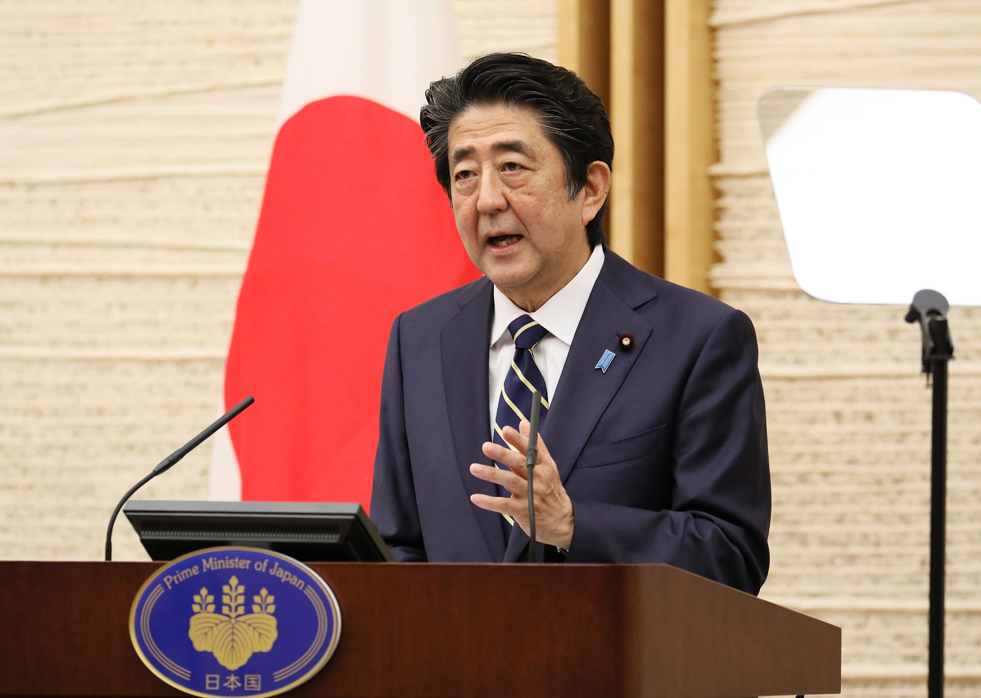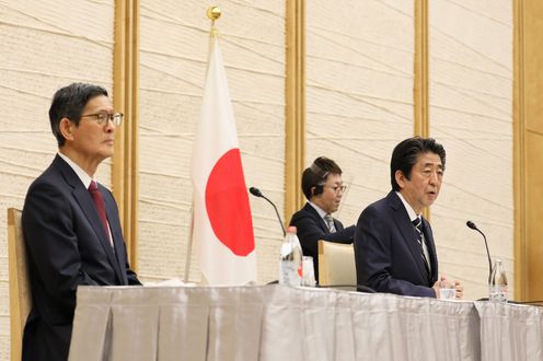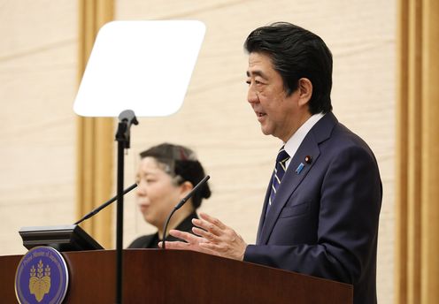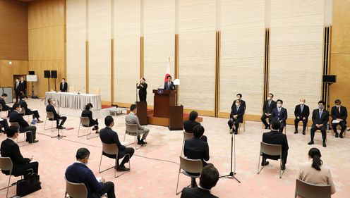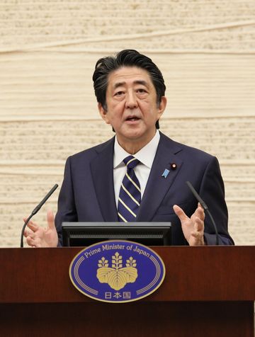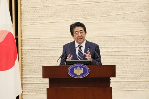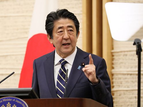 安倍总理在总理大臣官邸举行了记者招待会。