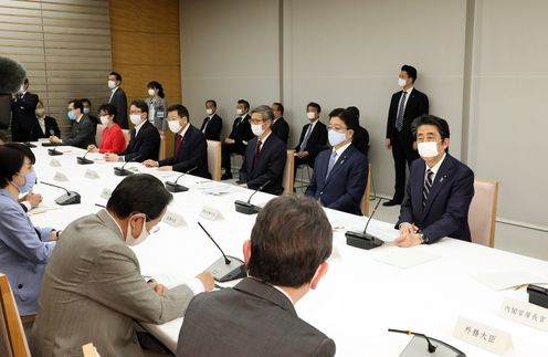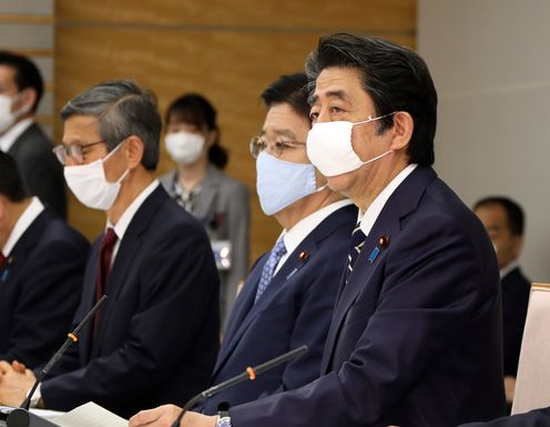 2020年5月14日,安倍总理在总理大臣官邸召开了第34次新型冠状病毒感染症对策本部会议。