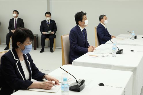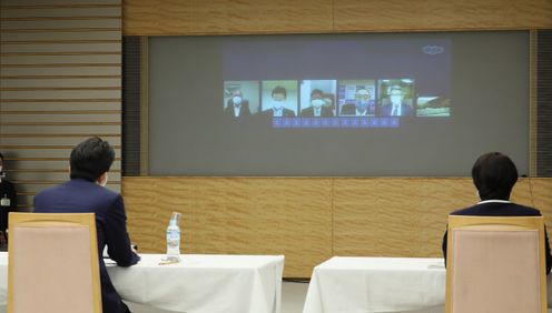 安倍总理在总理大臣官邸出席了2020年度第1次中央与地方协商会议。