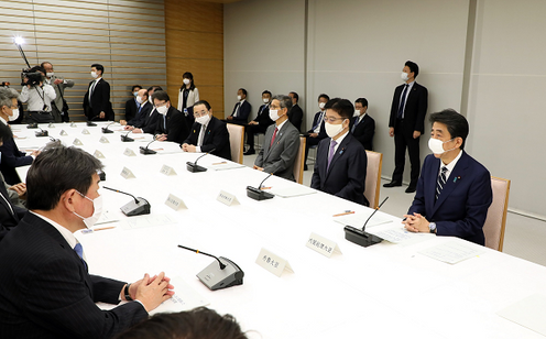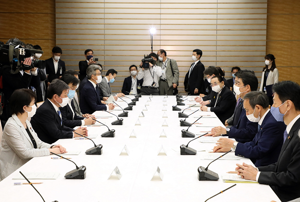 2020年5月25日,安倍总理在总理大臣官邸召开了第36次新型冠状病毒感染症对策本部会议。会议对如何应对新型冠状病毒感染症进行了讨论。