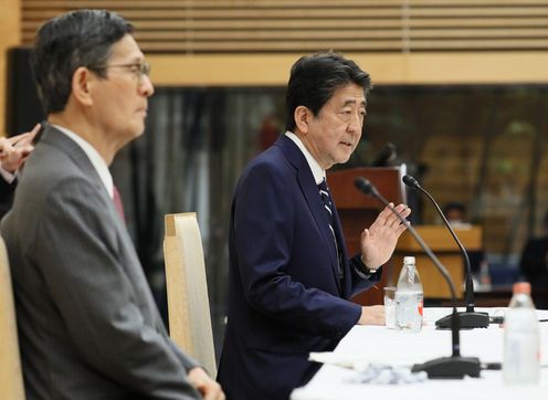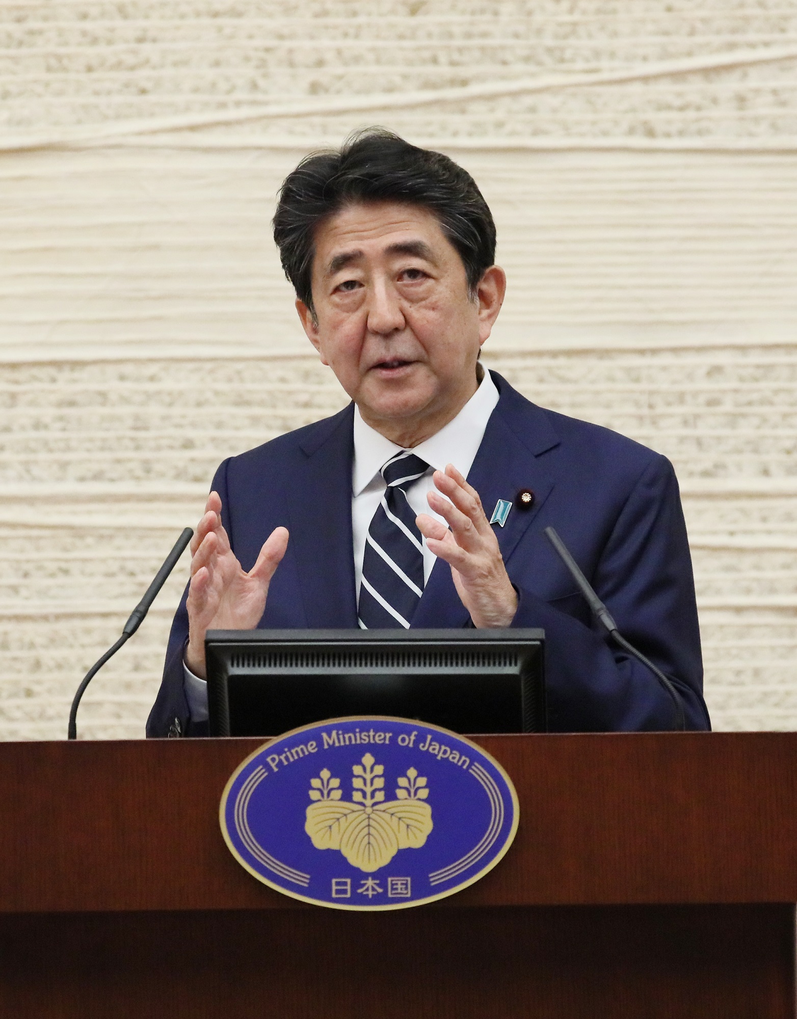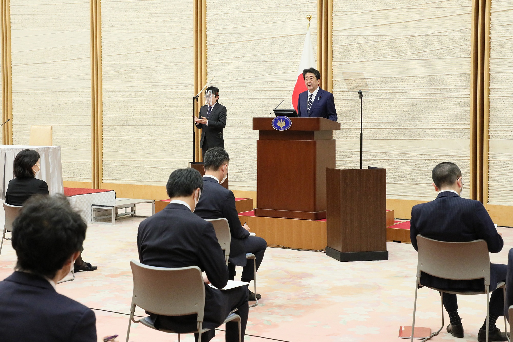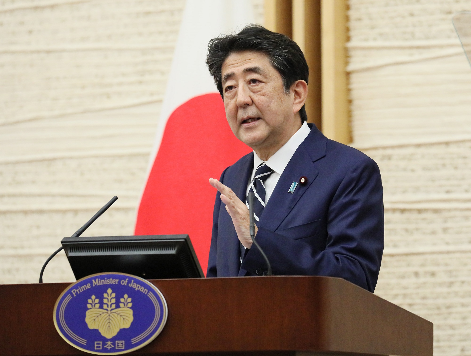 安倍总理在总理大臣官邸举行了记者招待会。