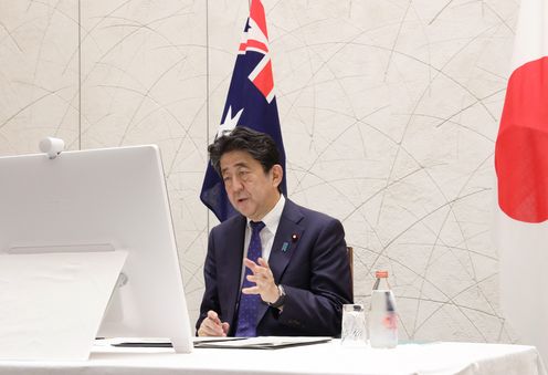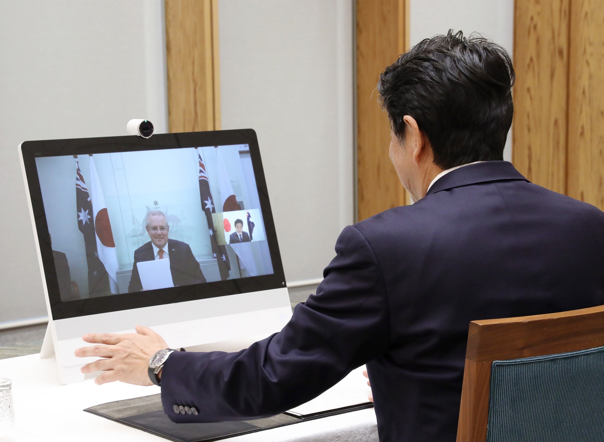 安倍总理在总理大臣官邸举行了日本澳大利亚首脑视频会谈。