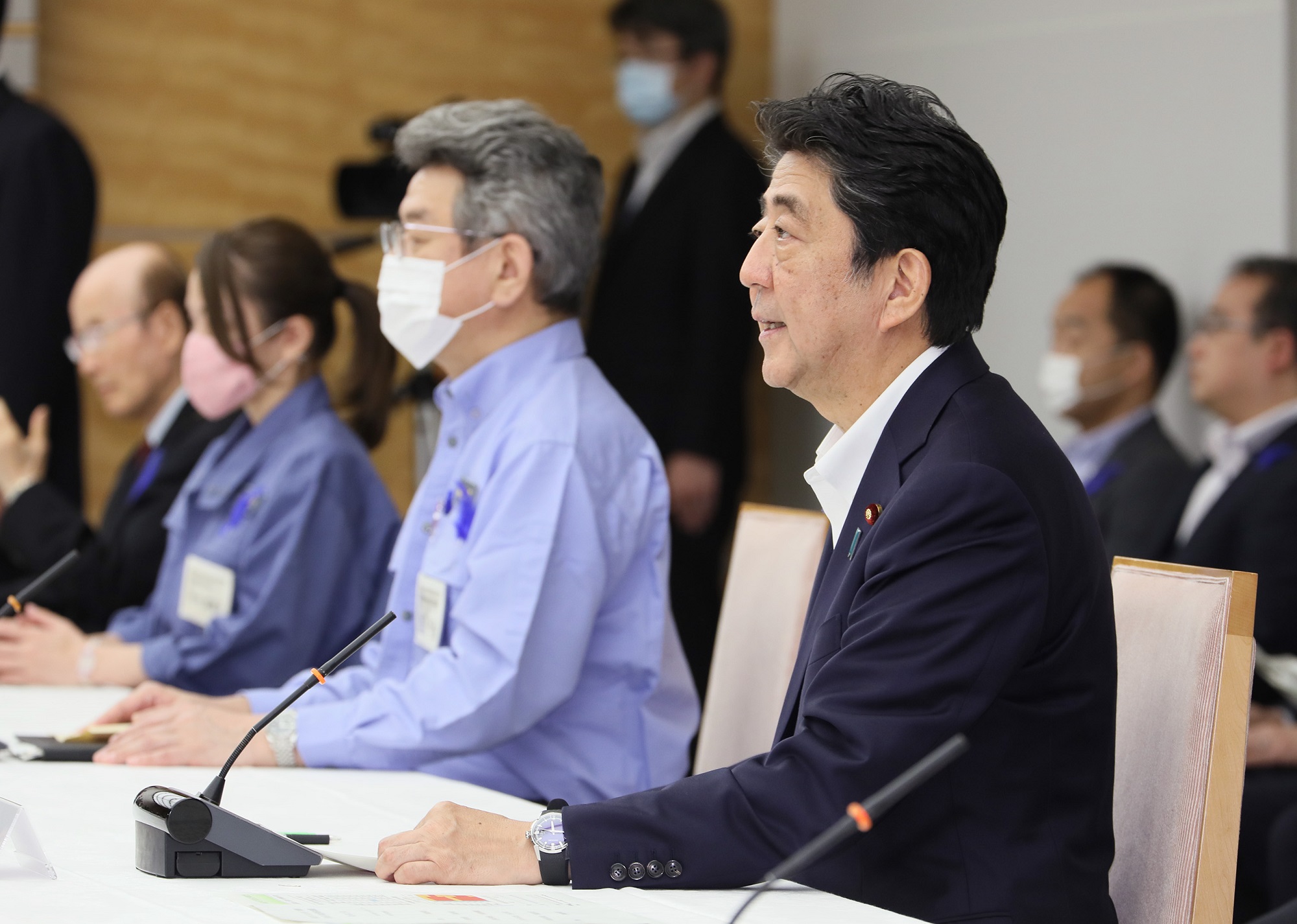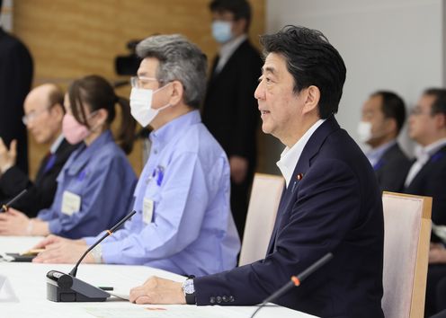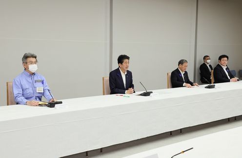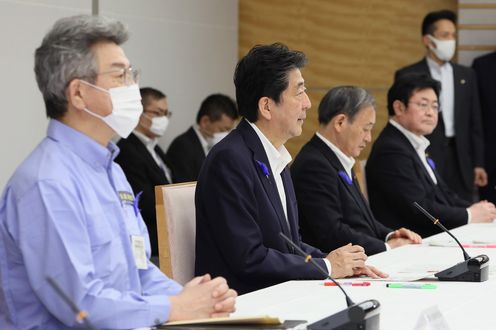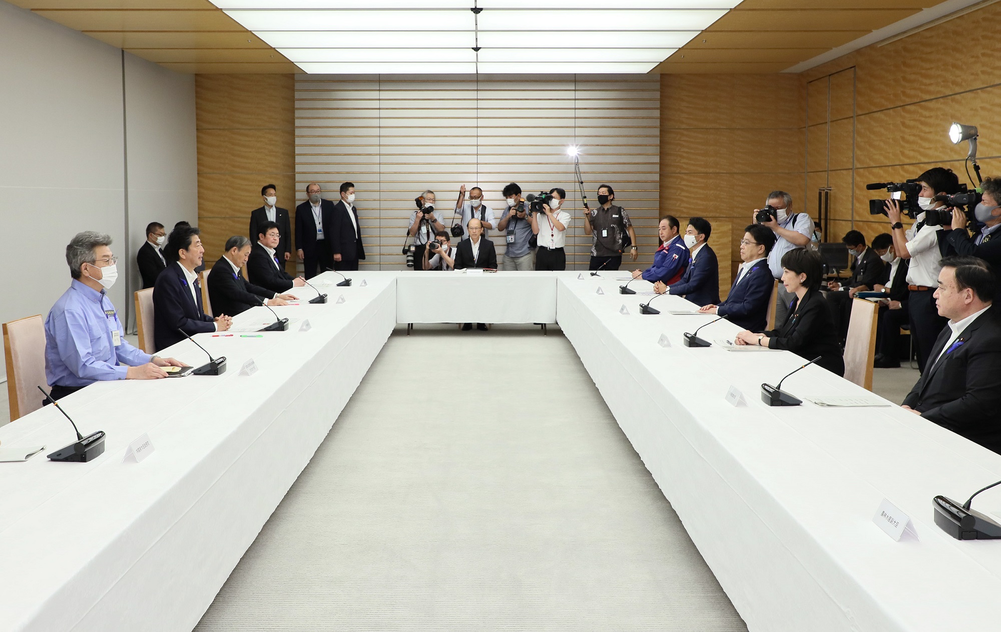 安倍总理在总理大臣官邸出席了2020年7月暴雨严重灾害对策本部会议(第6次)。