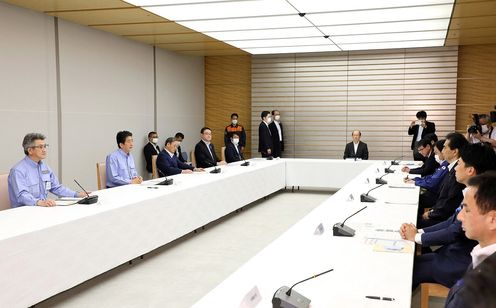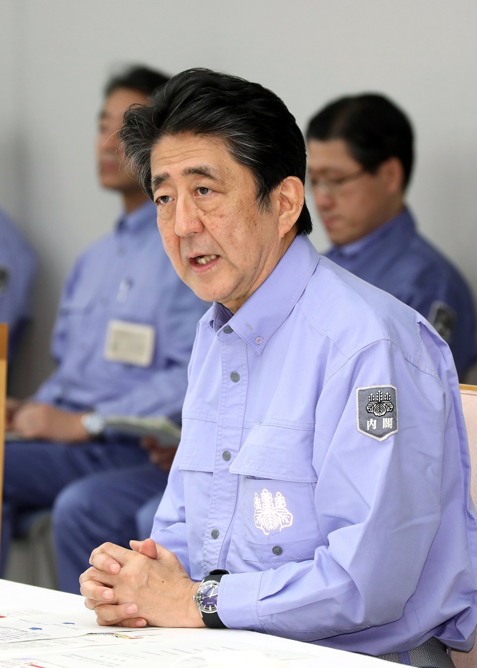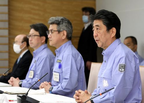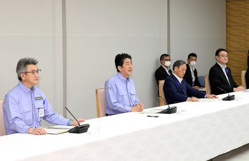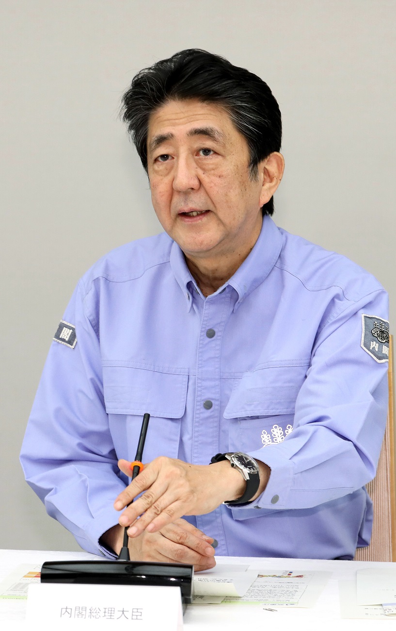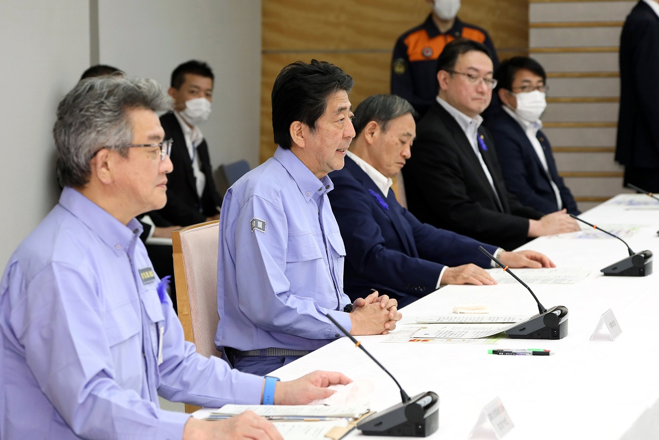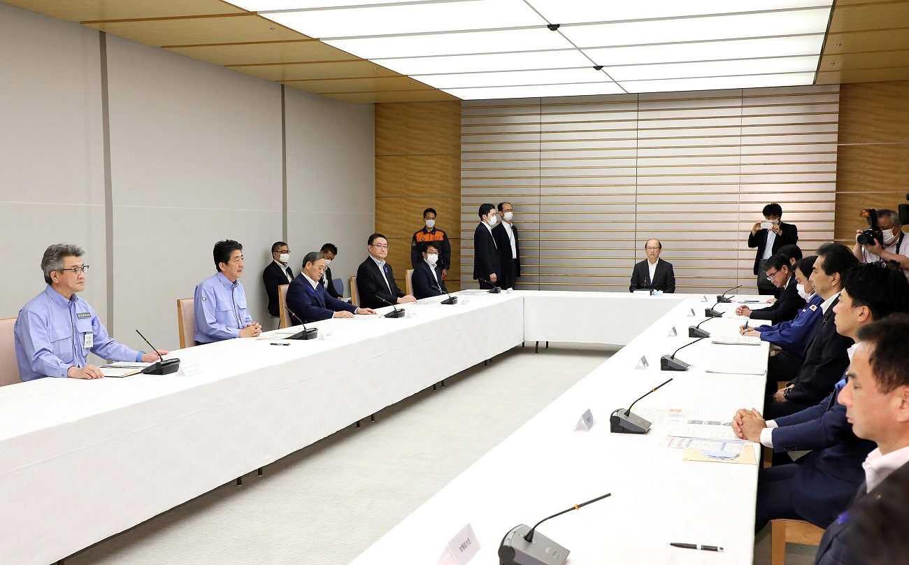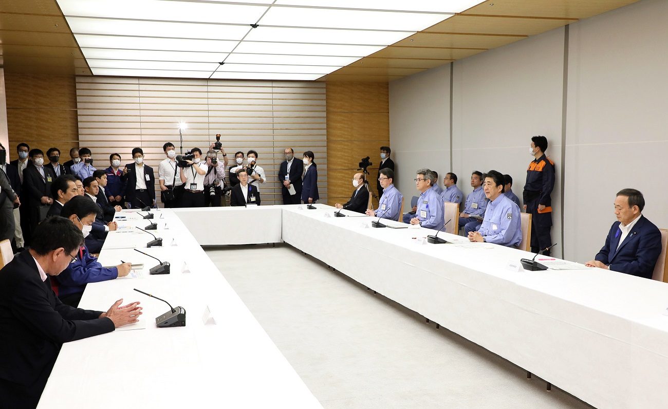 安倍总理在总理大臣官邸出席了2020年7月暴雨严重灾害对策本部会议(第7次)。