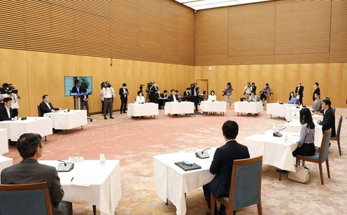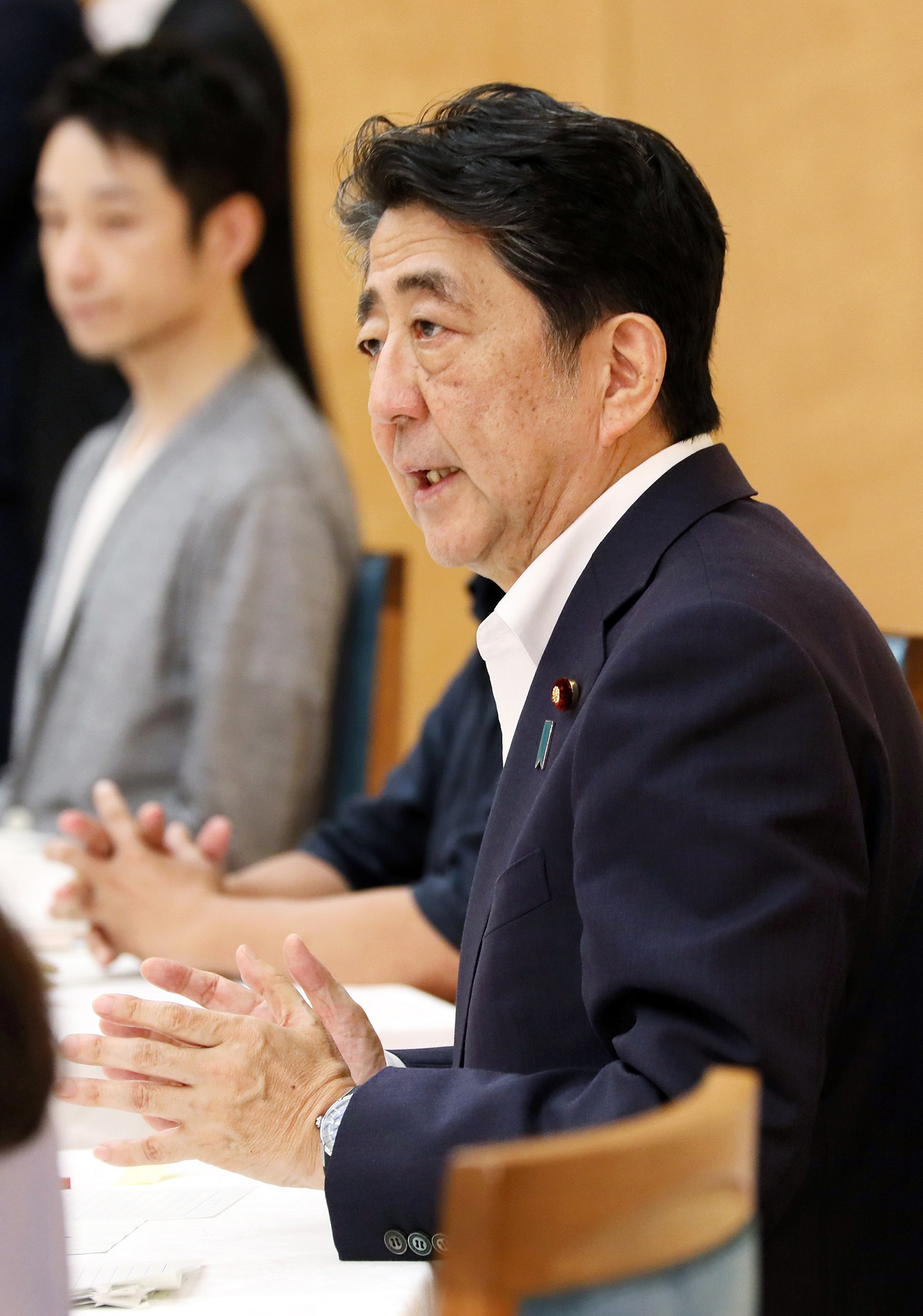 安倍总理在总理大臣官邸出席了第1次未来投资会议听取意见会议。