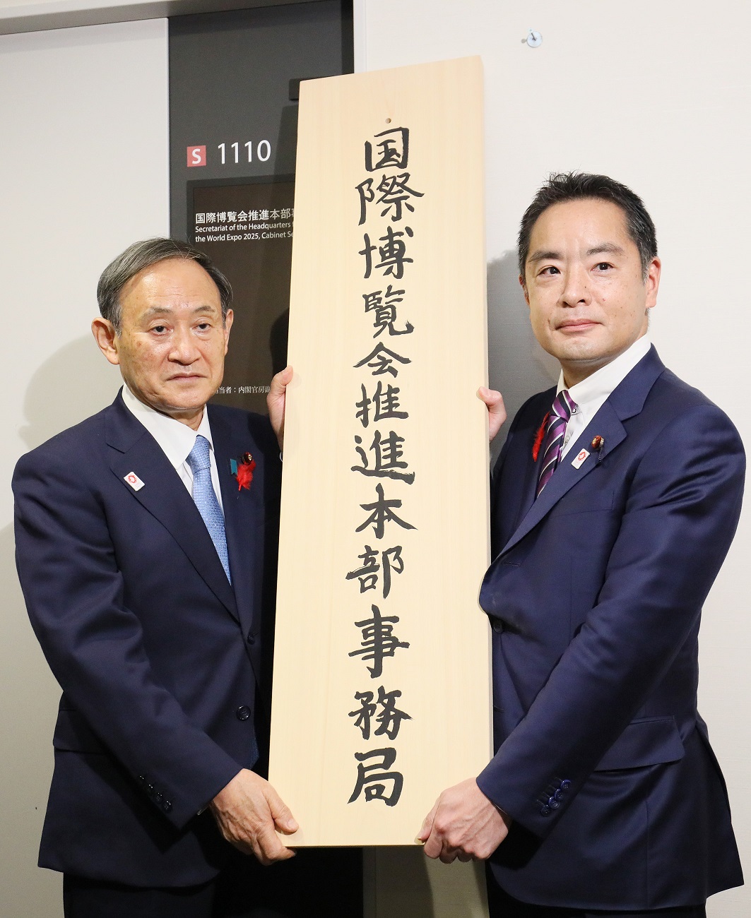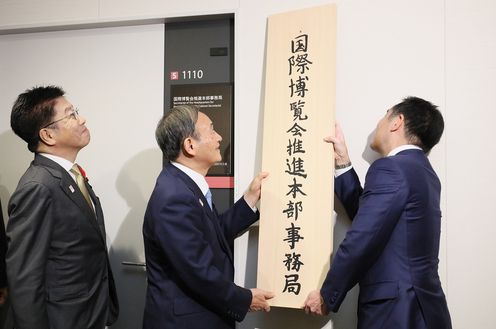 菅总理举行了世界博览会推进本部事务局挂牌仪式并对职员作了训示。