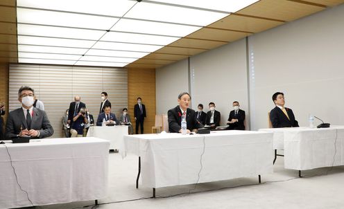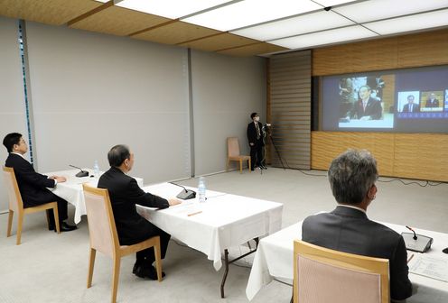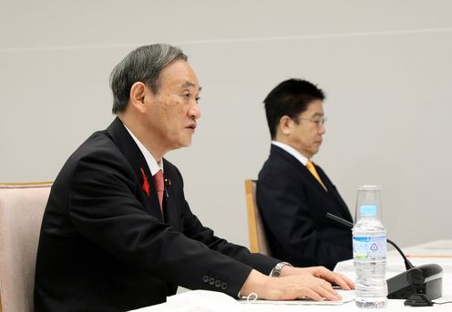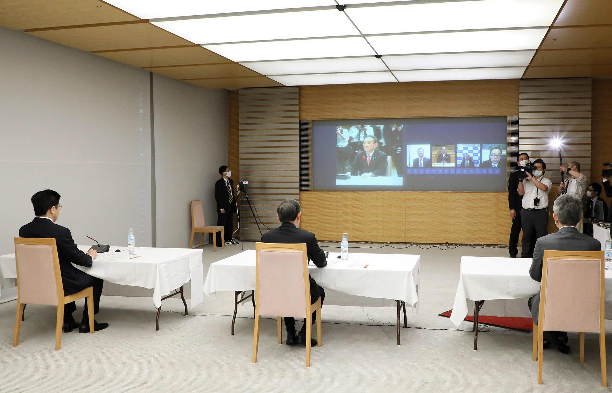 菅总理在总理大臣官邸出席了2020年度第2次中央与地方协商会议。