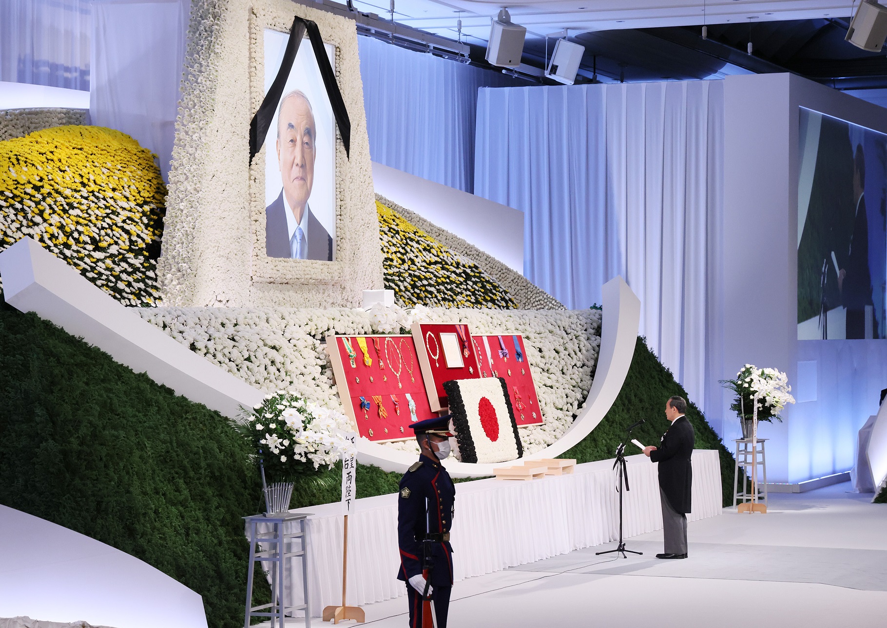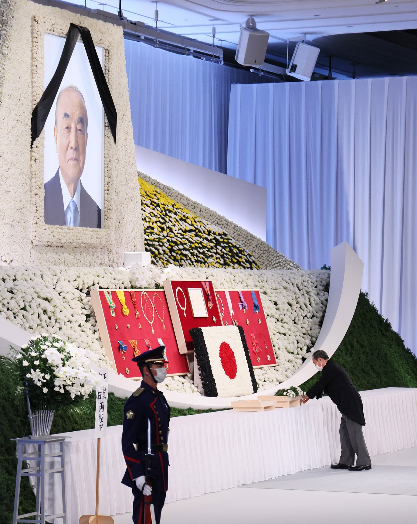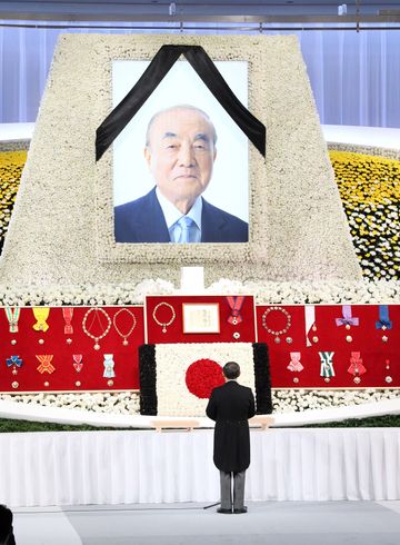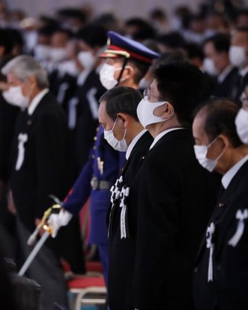 菅总理参加了在东京都内举行的“已故中曾根康弘”内阁・自由民主党联合葬礼。