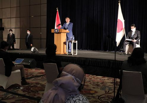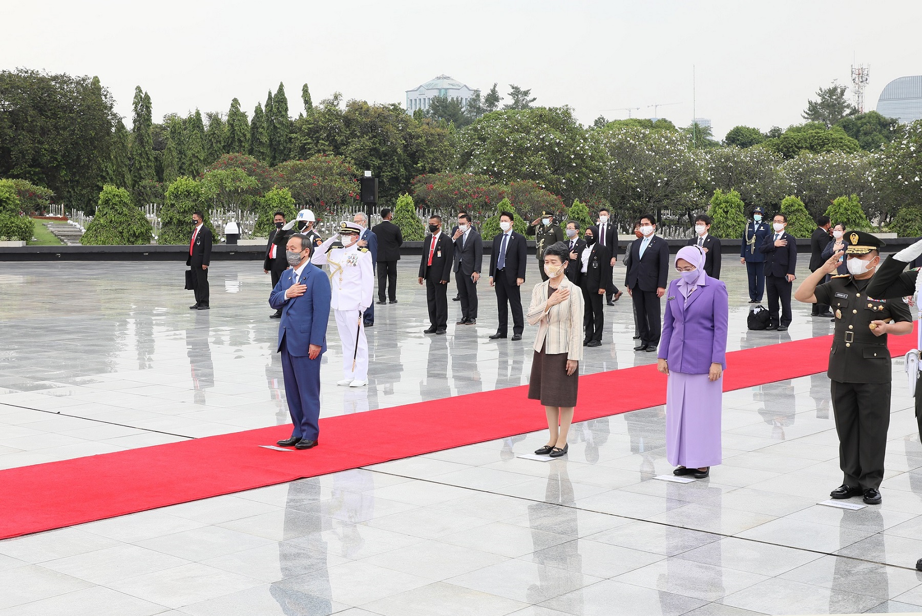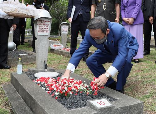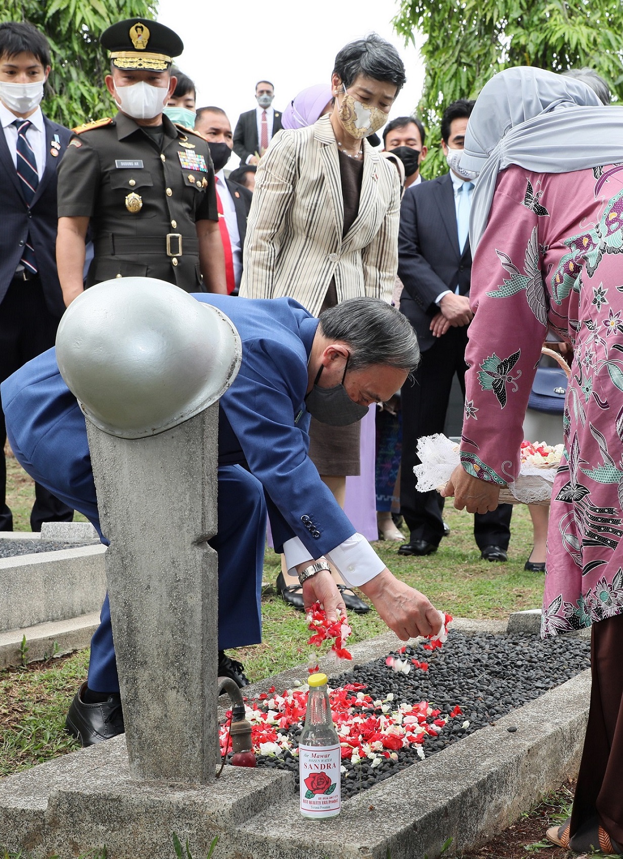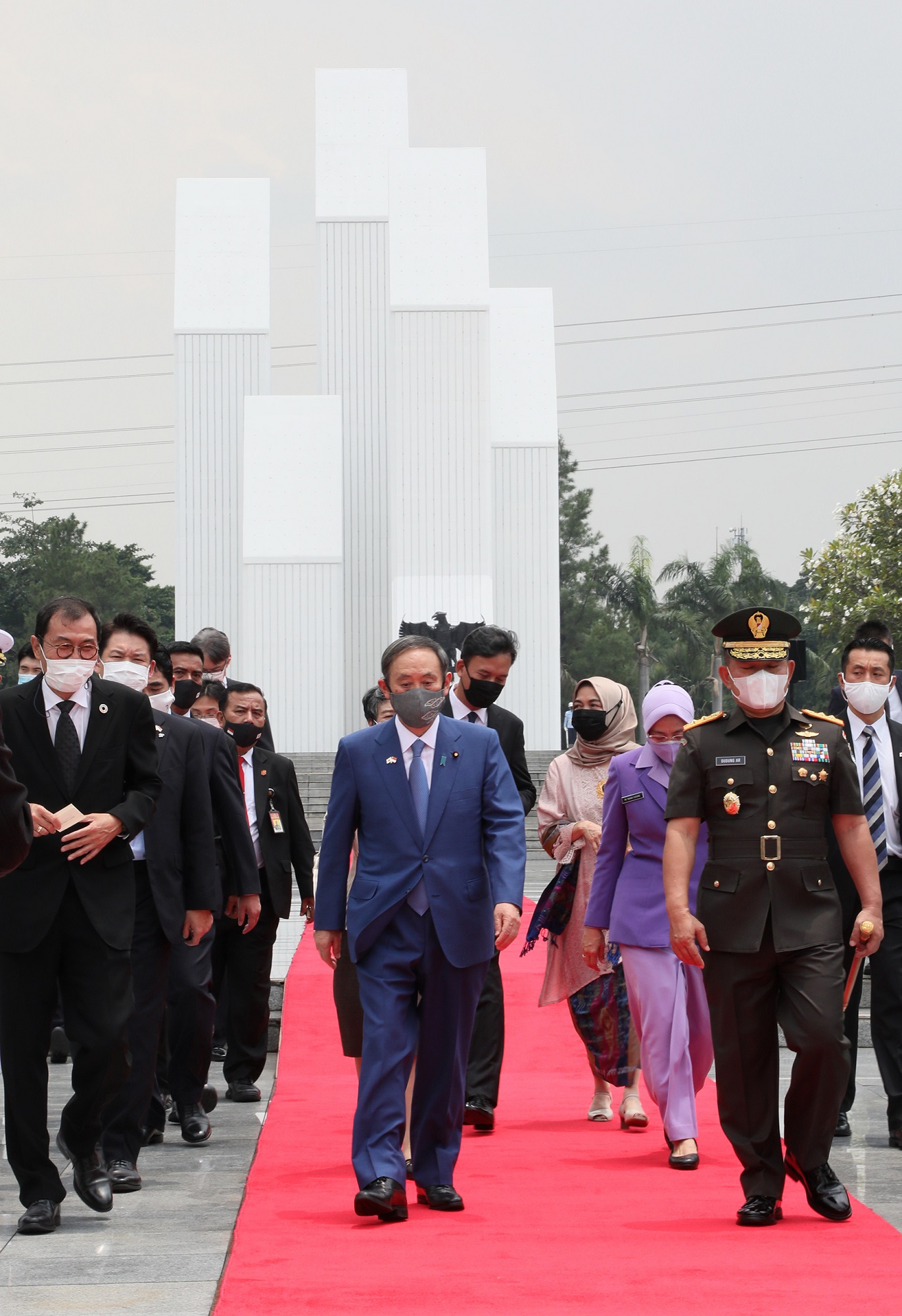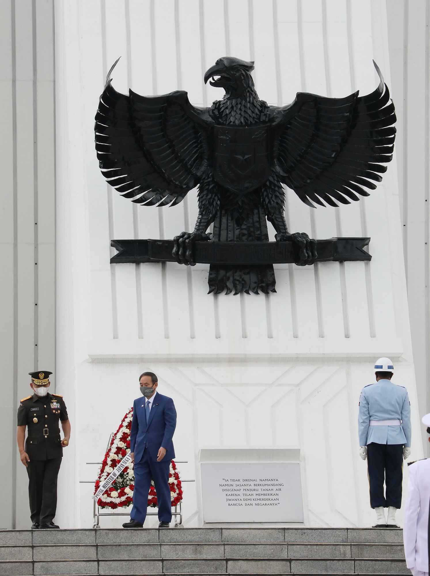 2020年10月21日(当地时间),正在印度尼西亚访问的菅总理接受了有日本留学经验人士的拜访,接着举行了国内外记者招待会。之后,总理访问了卡利巴达国家英雄陵园并献花。
