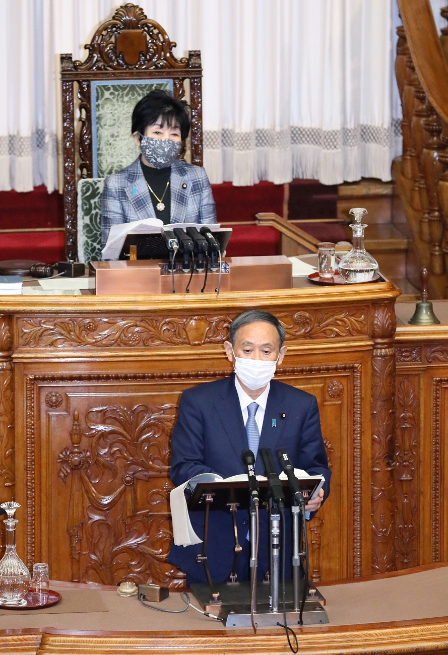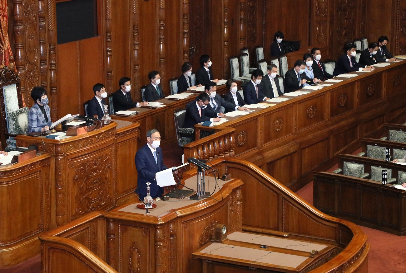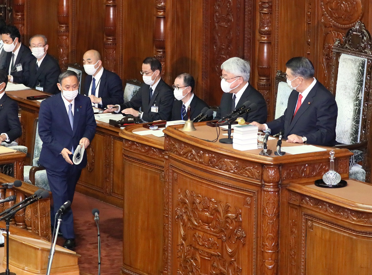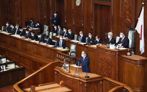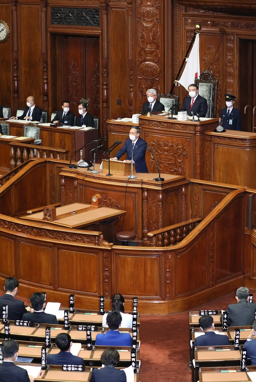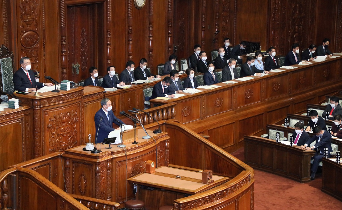 菅总理在众议院全体会议及参议院全体会议上发表了第203届国会就职演说。