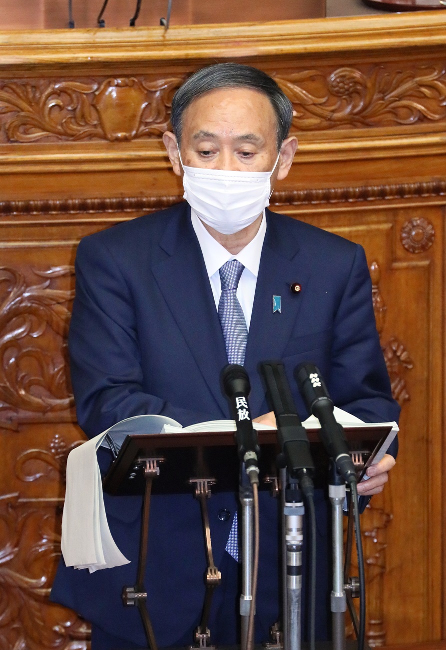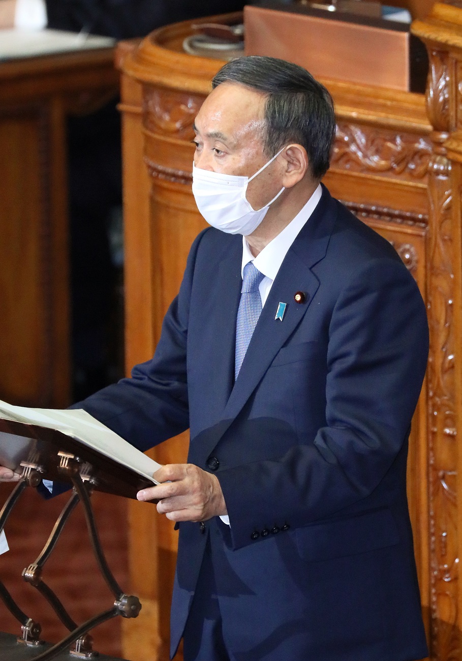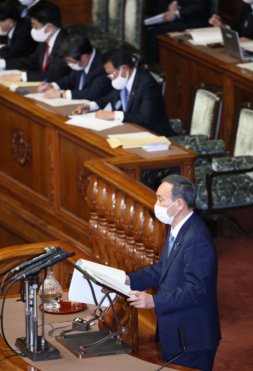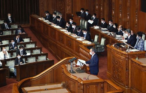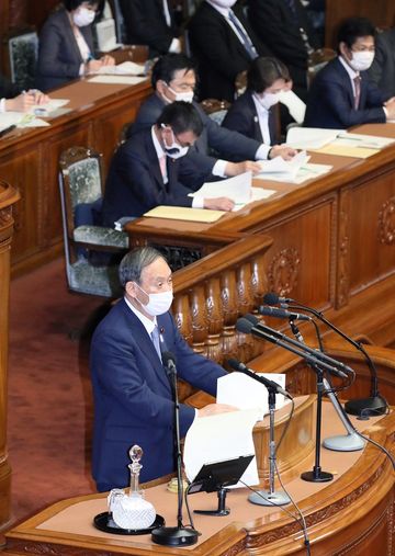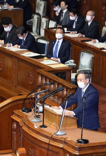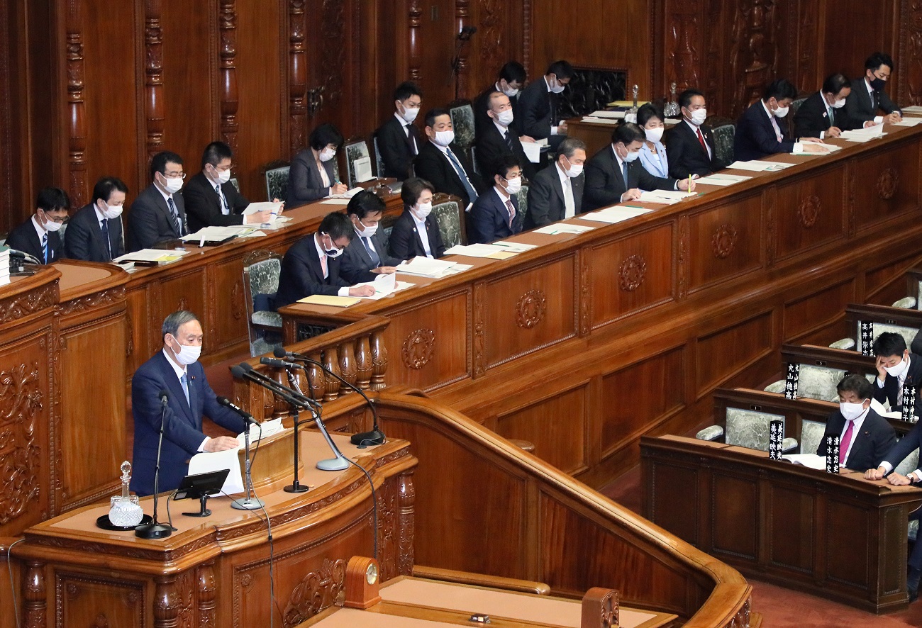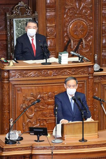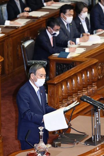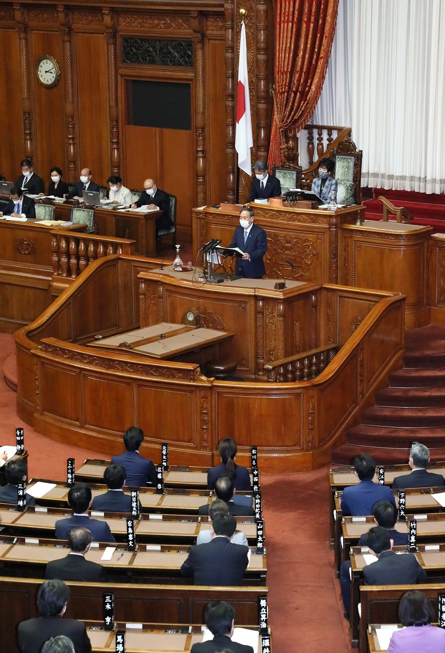 菅总理在众议院全体会议及参议院全体会议上发表了第203届国会就职演说。