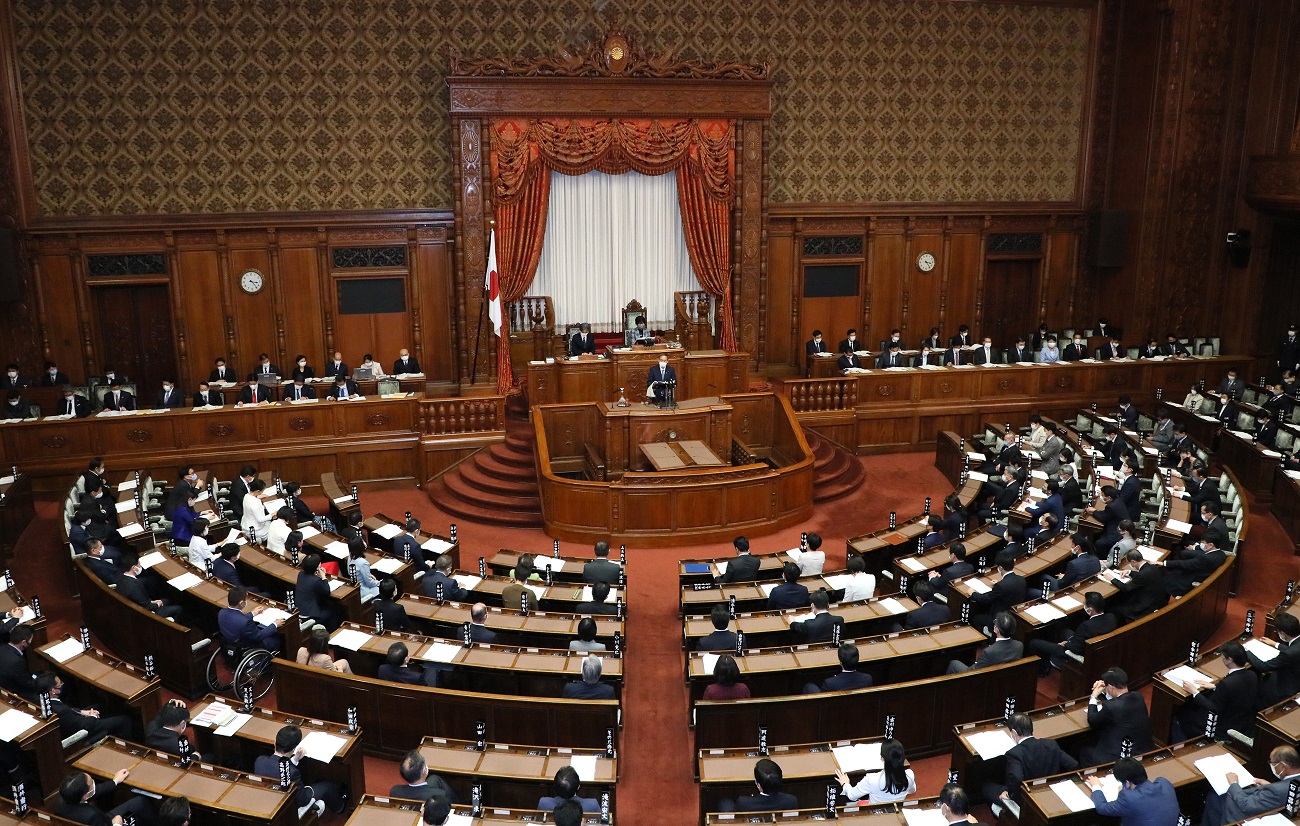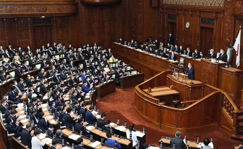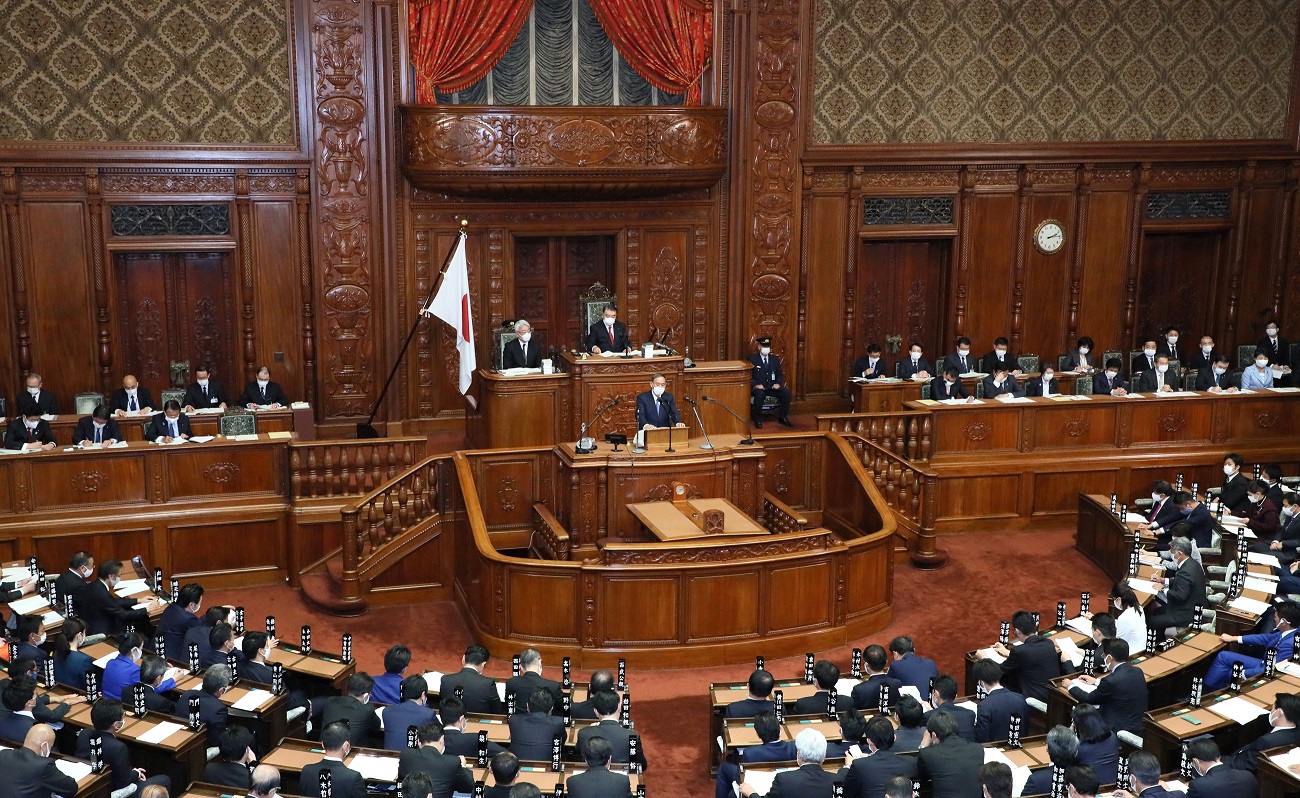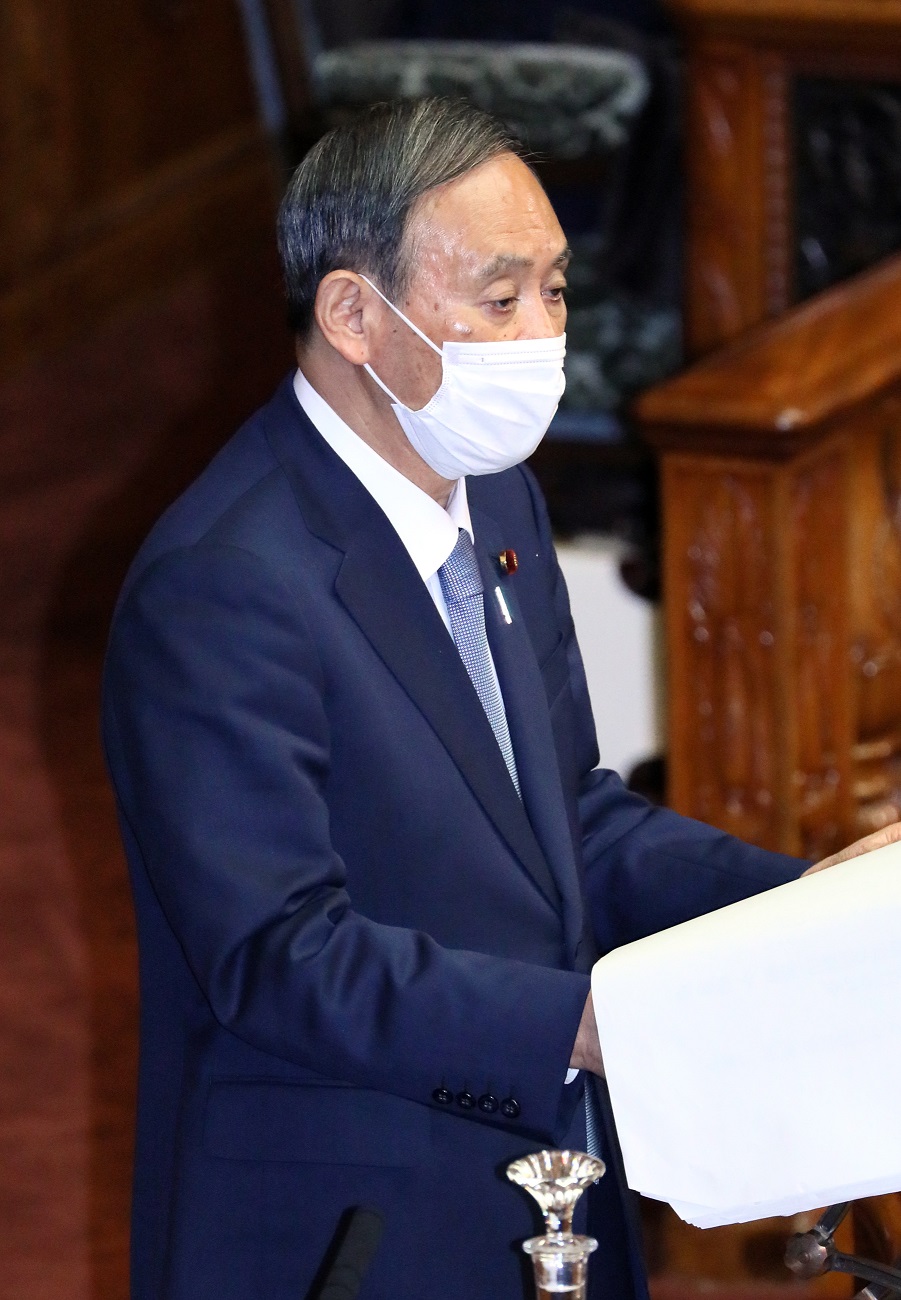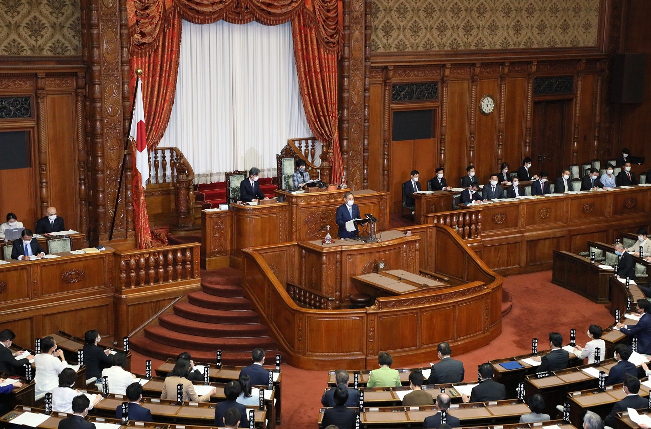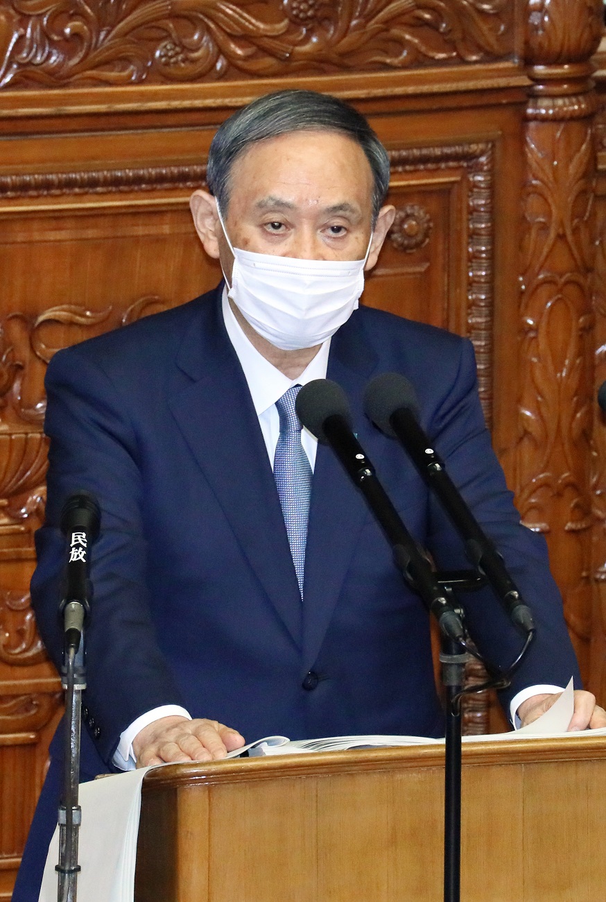 菅总理在众议院全体会议及参议院全体会议上发表了第203届国会就职演说。
