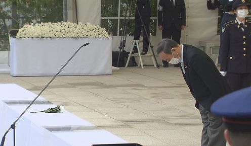 菅总理出席了在防卫省举行的2020年度自卫队殉职队员追悼仪式。
