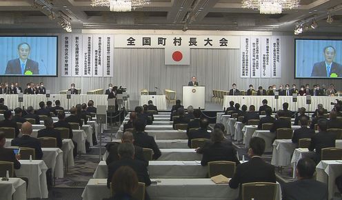 菅总理出席了在东京都内举行的全国町长村长大会。