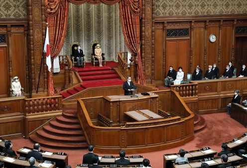菅总理出席了在国会议事堂举行的议会开设一百三十周年纪念典礼。