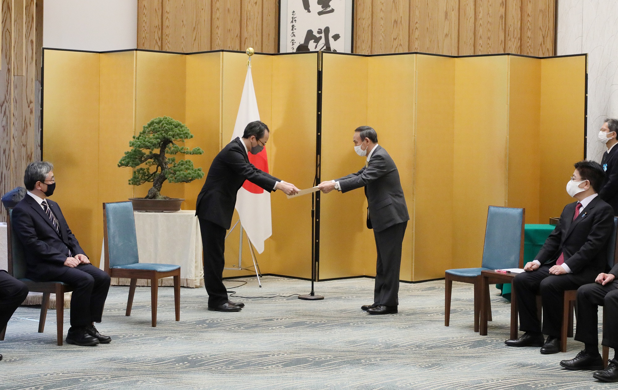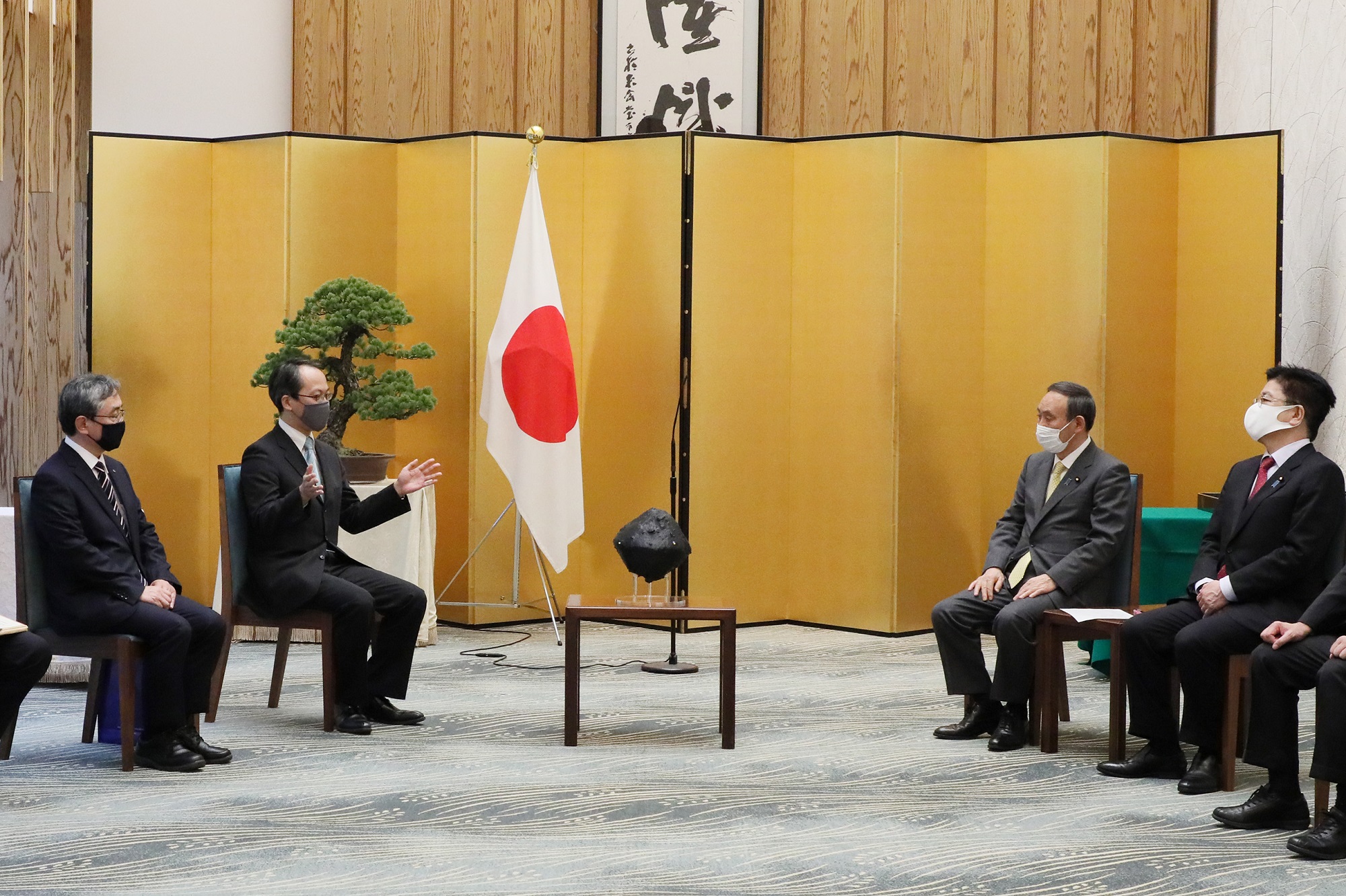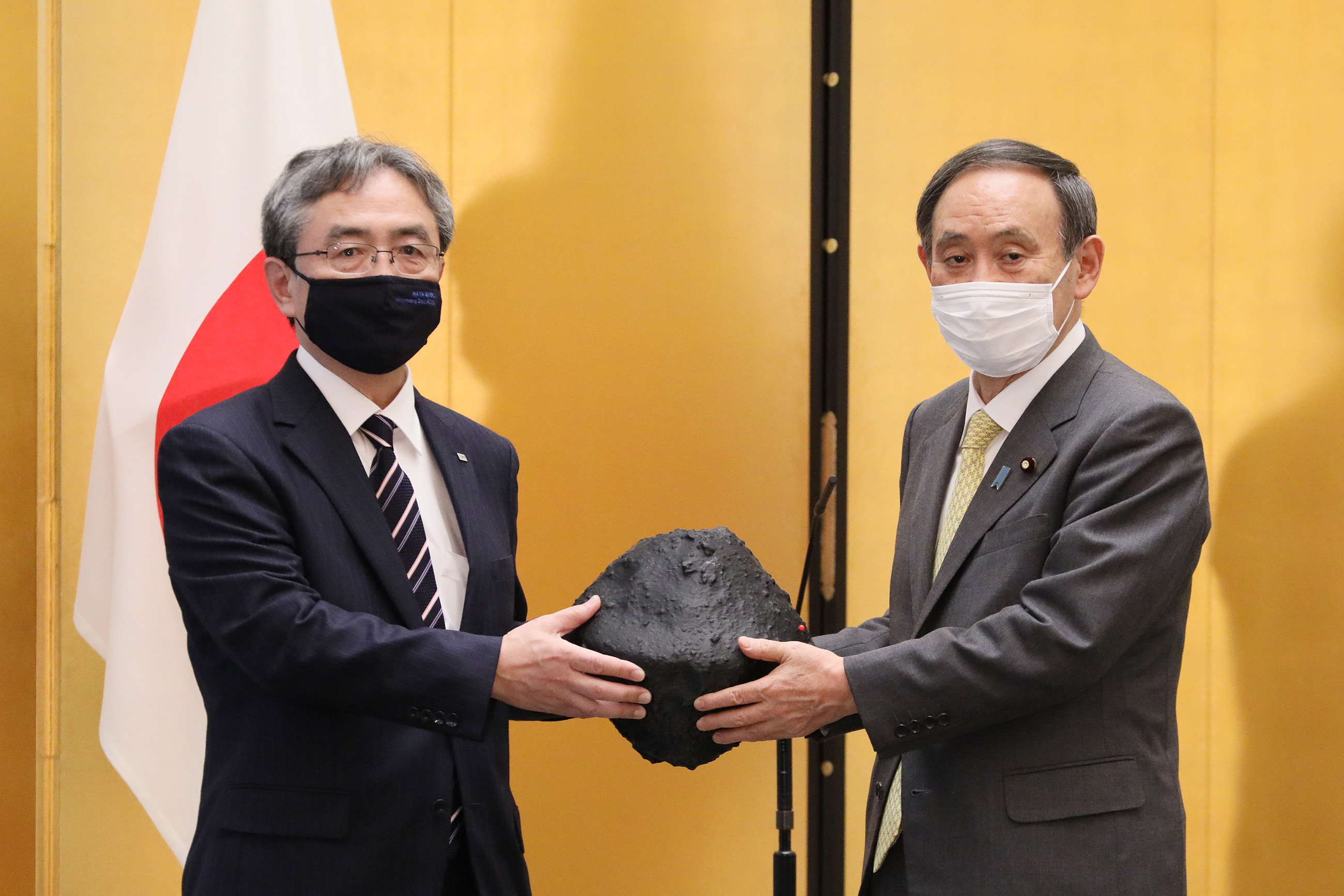 菅总理在总理大臣官邸出席了隼鸟2号项目团队的内阁总理大臣表彰仪式。