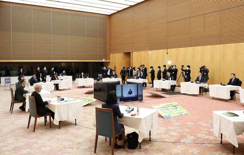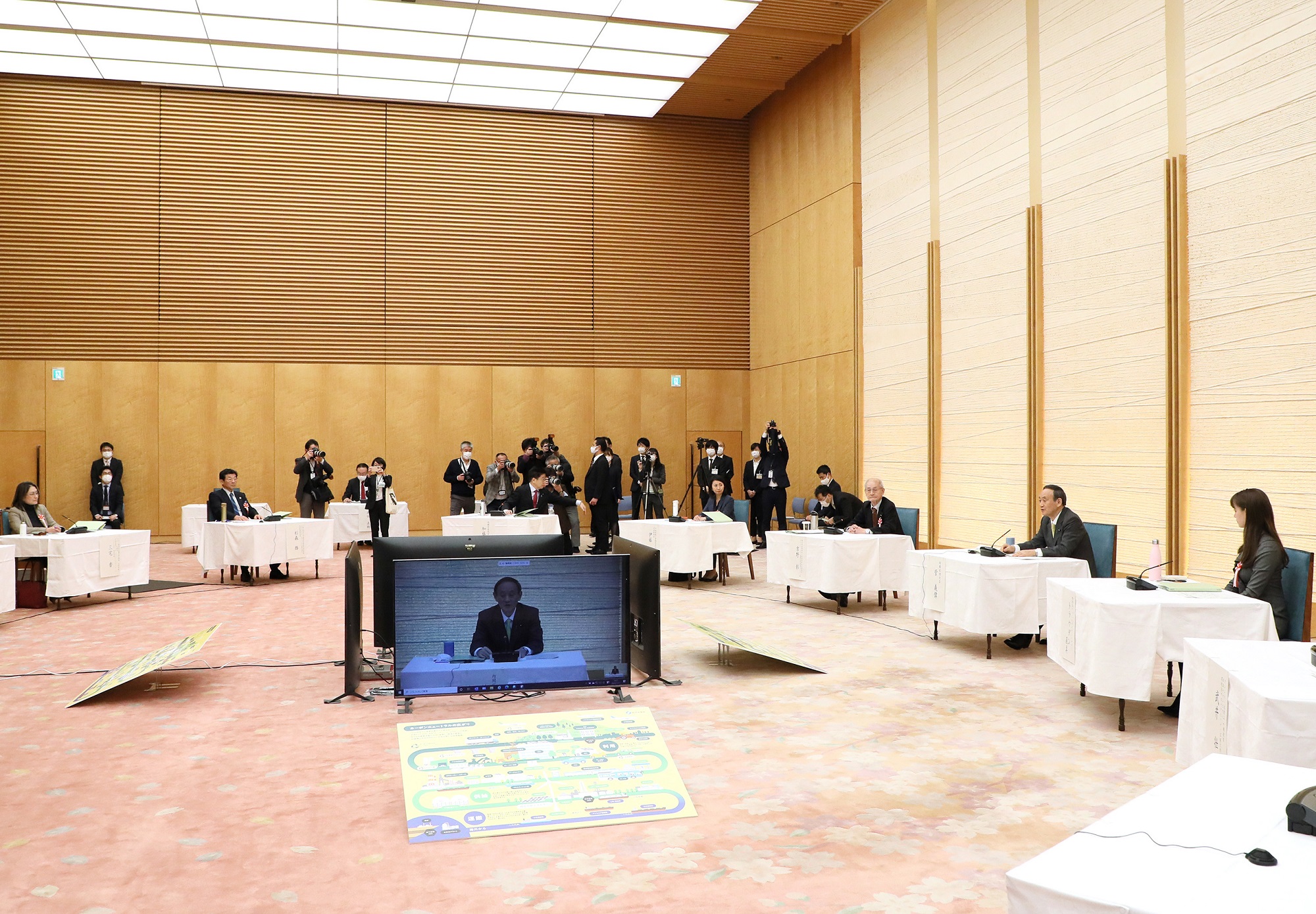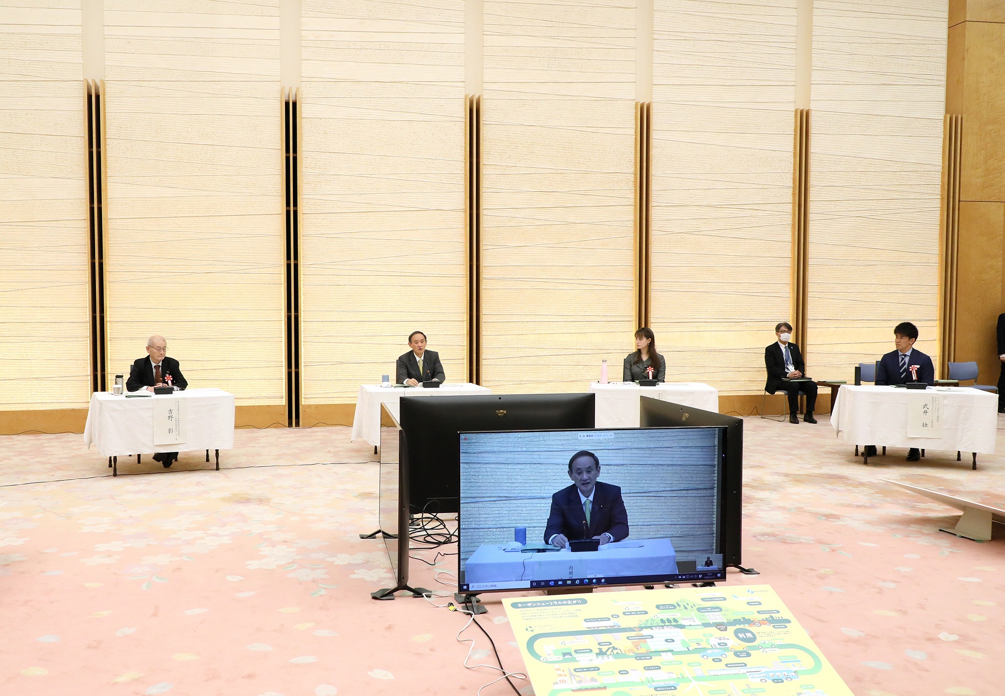 菅总理在总理大臣官邸出席了2050年碳中和全国论坛。