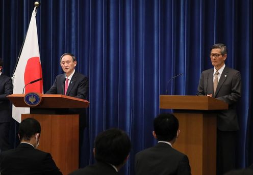 菅总理在总理大臣官邸举行了有关新型冠状病毒感染症的记者招待会。