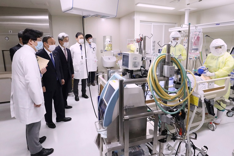 菅总理在东京都内视察了国立国际医疗研究中心。