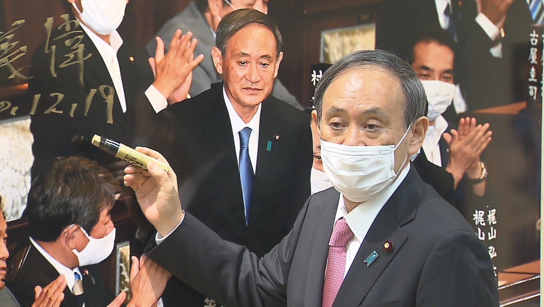 菅总理在总理大臣官邸举行了关于暂停Go To Travel活动及代表今年的汉字等的记者会。