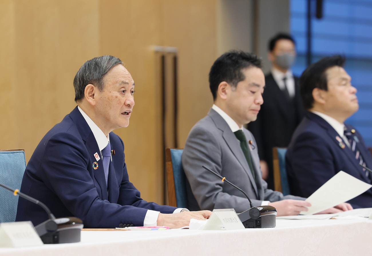 菅总理在总理大臣官邸出席了2020年度第3次中央与地方协商会议。