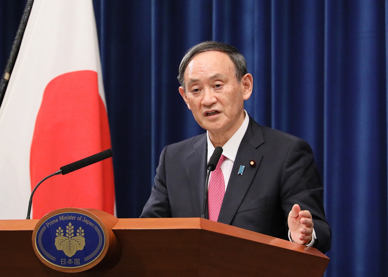 菅总理在总理大臣官邸举行了关于暂停所有国家和地区的外国人新入境等的记者会。