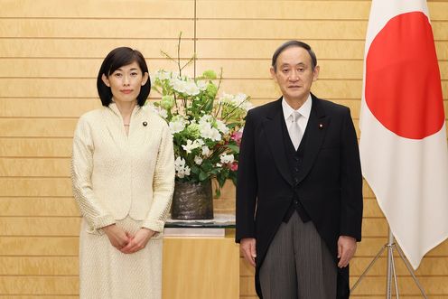 菅总理在出席在皇居举行的认证式后,返回总理大臣官邸,向丸川珠代国务大臣递交了任命书。