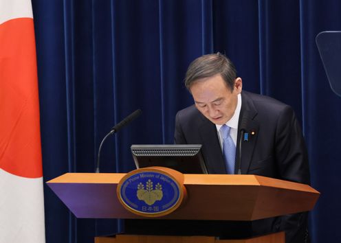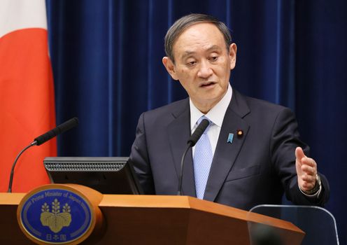 菅总理在总理大臣官邸举行了有关新型冠状病毒感染症的记者招待会。