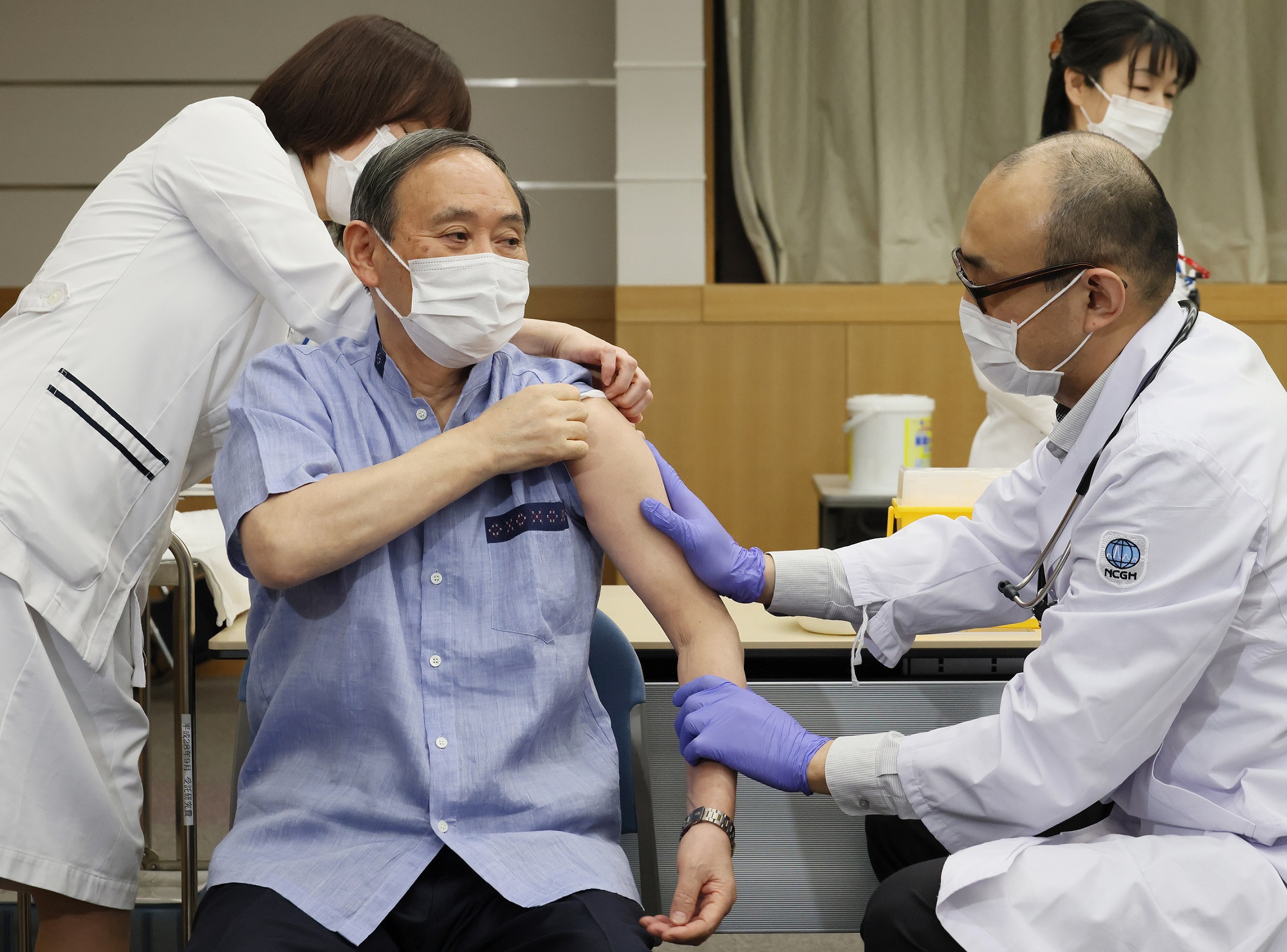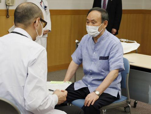 菅总理在位于东京都内的国立国际医疗研究中心接种了疫苗。