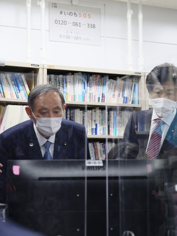 菅总理考察了位于东京都内的特定非营利活动法人自杀对策支援中心LIFELINK。