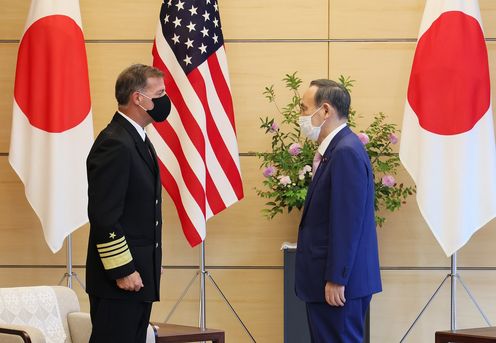 菅总理在总理大臣官邸接受了美利坚合众国印太司令部司令约翰・阿奎利诺的拜会。
