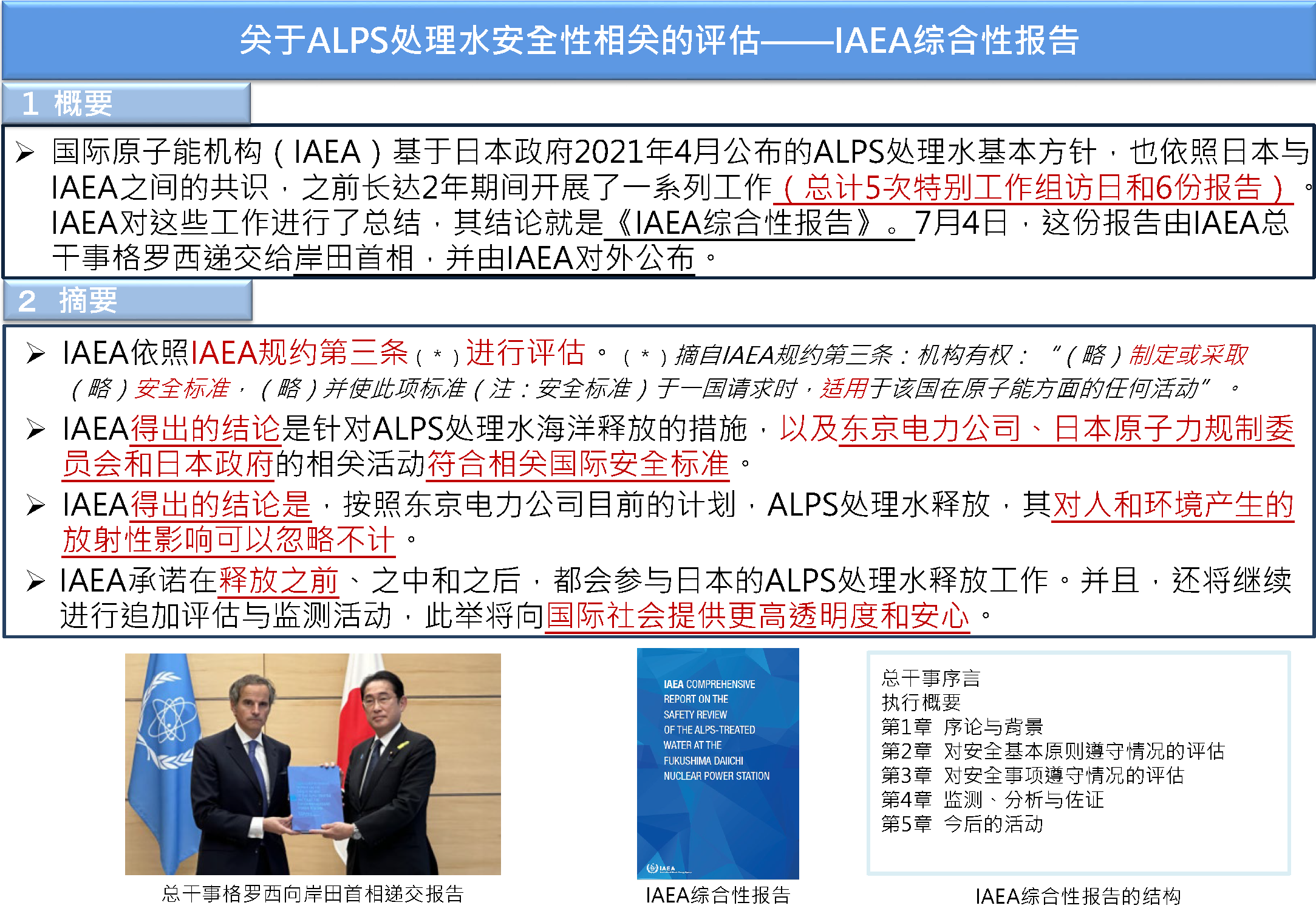 2023年7月4日,岸田首相与国际原子能机构(IAEA)总干事拉斐尔・马里亚诺・格罗西(Director General Rafael Mariano Grossi)会谈。格罗西总干事提交了关于ALPS处理水安全性的综合报告。岸田首相将继续依据科学,高度透明地向国内及国际社会细致说明。