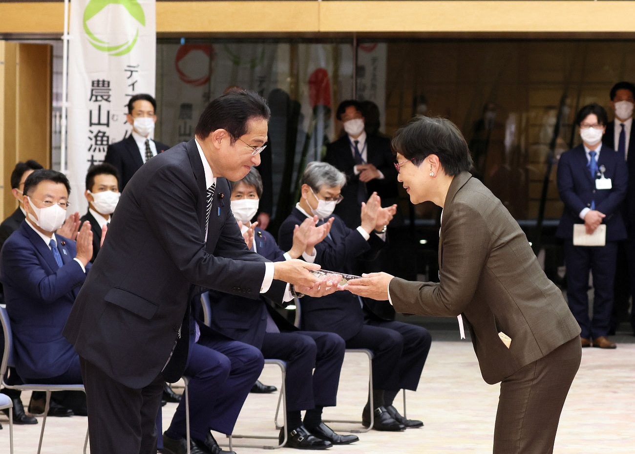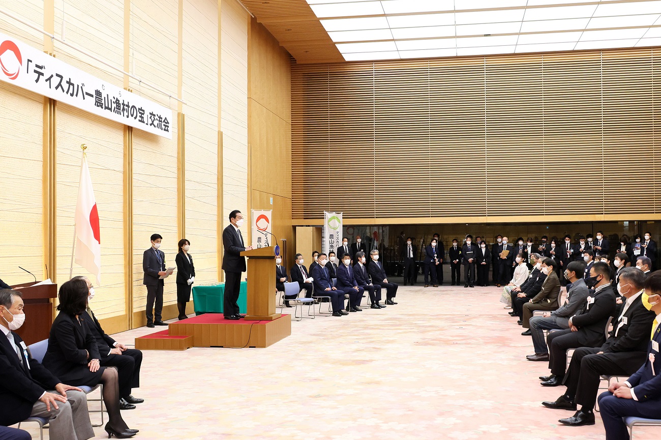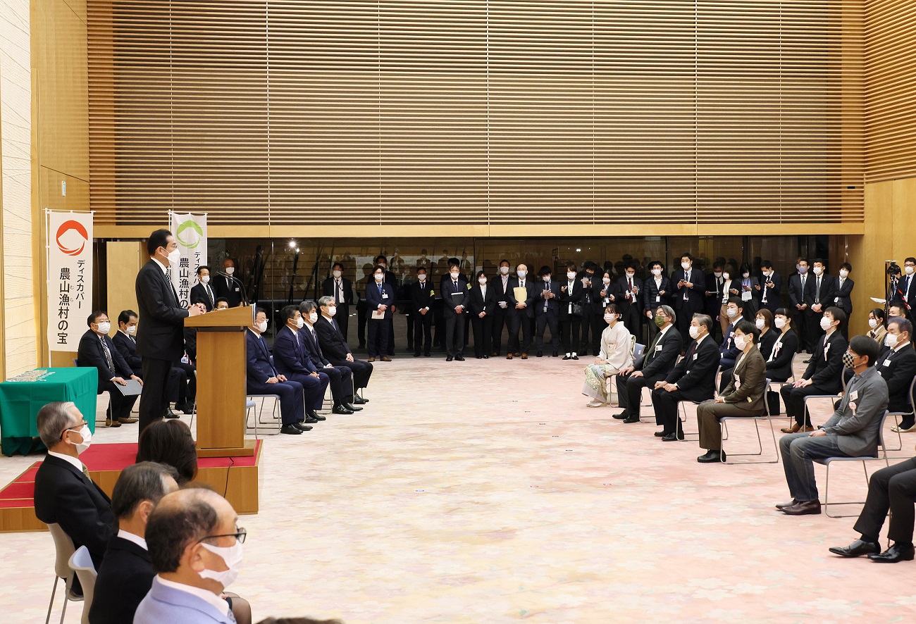 令和3年12月9日、岸田総理は、総理大臣官邸で「ディスカバー農山漁村(むら)の宝」(第8回選定)交流会に出席しました。