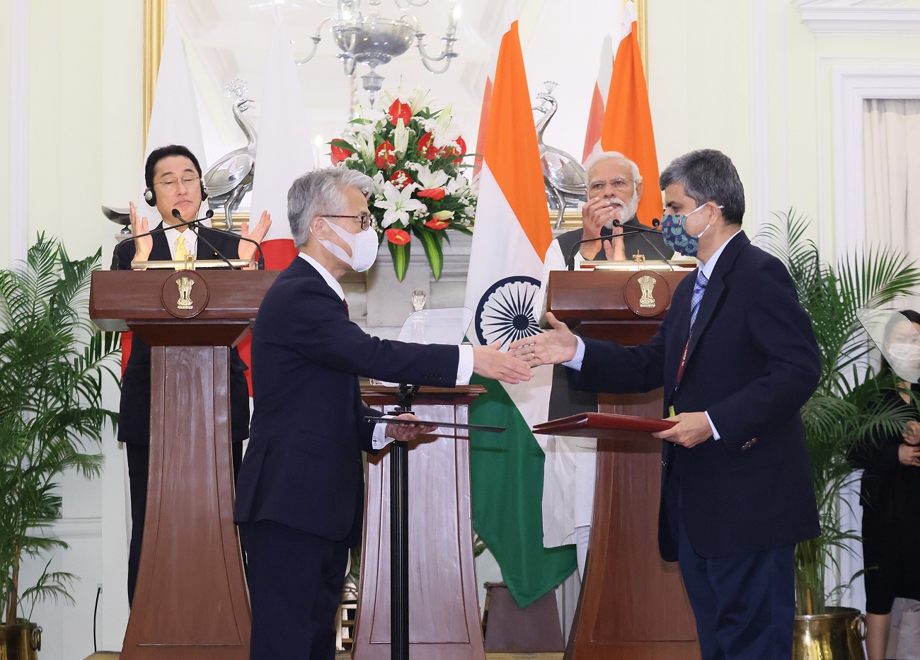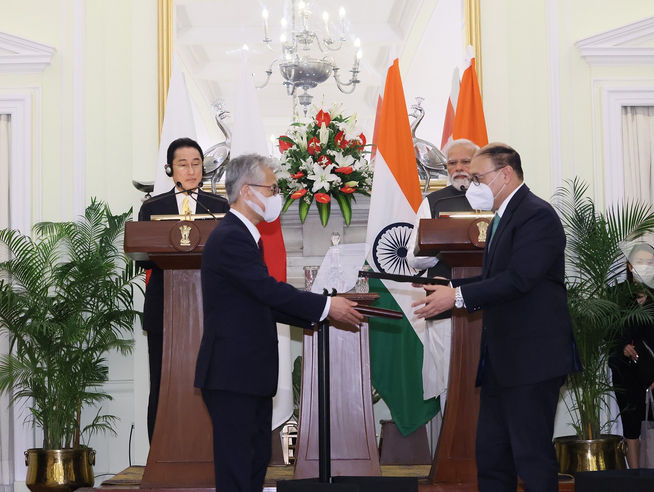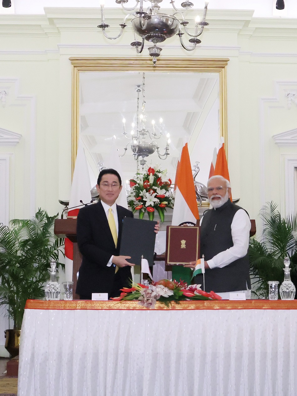 #外交・安全保障 #日印首脳会談 #ウクライナ情勢 #自由で開かれたインド太平洋 #QUAD インド訪問 更新日:令和4年3月19日 総理の一日 ツイート 文書署名式1 インドに到着した岸田総理1 インドに到着した岸田総理2 インドに到着した岸田総理3 首脳会談に向かう両首相1 首脳会談に向かう両首相2 首脳会談に向かう両首相3 日印首脳会談1 日印首脳会談2 日印首脳会談3 日印首脳会談4 日印経済フォーラム1 日印経済フォーラム2 日印経済フォーラム3 日印経済フォーラム4 文書署名式2 文書署名式3 文書署名式4 文書署名式5 文書交換式1 文書交換式2 文書交換式3 日印共同記者発表1 日印共同記者発表2 日印共同記者発表3 日印共同記者発表4 岸田総理の訪印を歓迎するパネル 関連動画開く閉じる 動画が再生できない方はこちら(政府広報オンライン) 動画が再生できない方はこちら(政府広報オンライン) 令和4年3月19日(現地時間)、岸田総理は、インド共和国のニューデリーを訪問しました。 総理は、インド共和国のナレンドラ・モディ首相と会談を行った後、日印経済フォーラムに参加しました。続いて、文書署名式、交換式を行った後、共同記者発表を行い、共同声明(仮訳/英文)を発出しました。 最後に、総理は日印首脳会談等について会見を行いました。