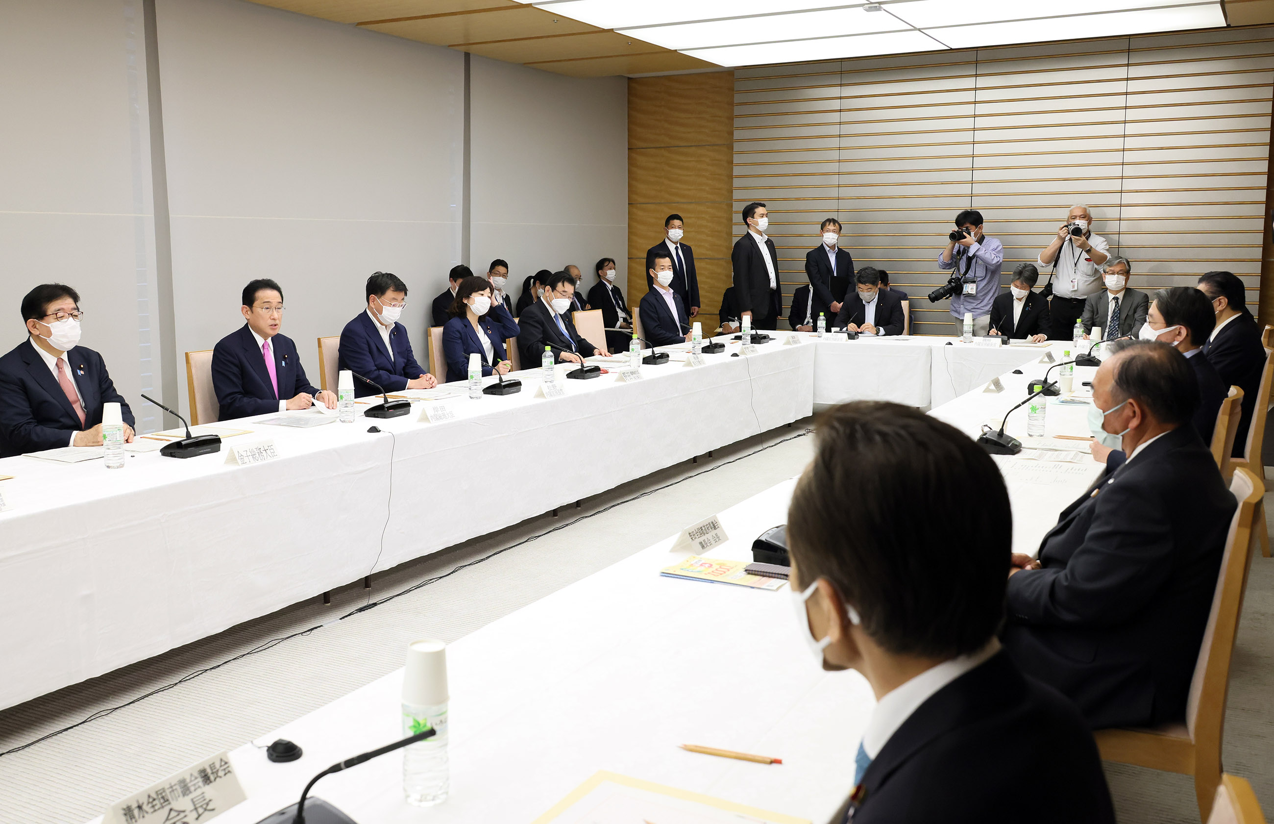 「本日は、地方6団体の皆様方に、御出席いただき誠にありがとうございます。また、日々、新型コロナ対策に、また様々な政策において御協力いただいていますことに、心から厚く御礼を申し上げます。