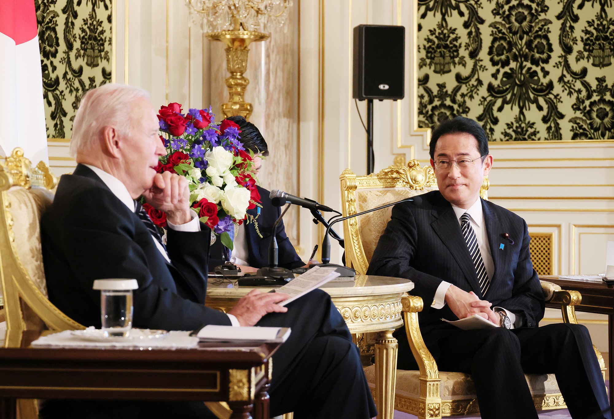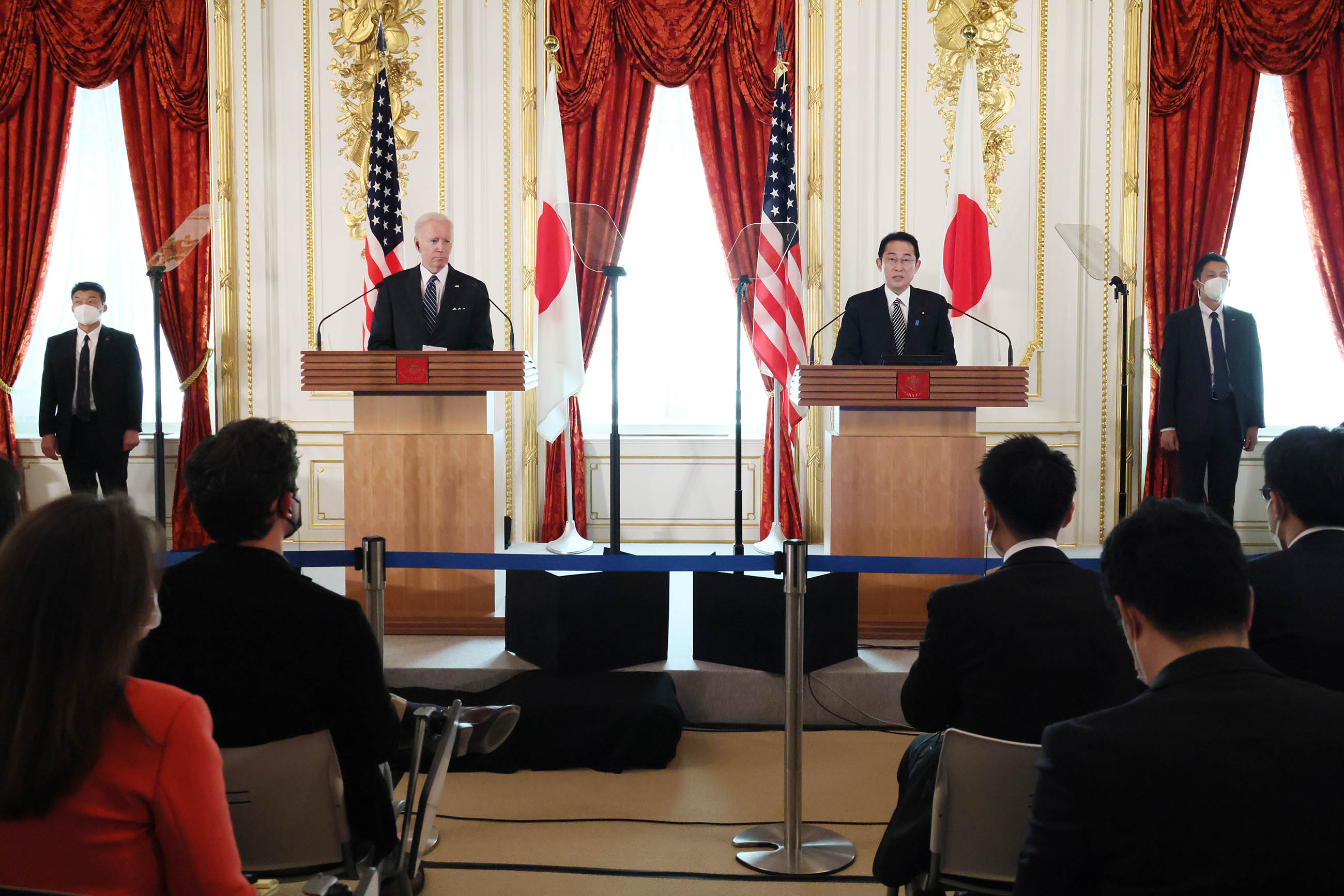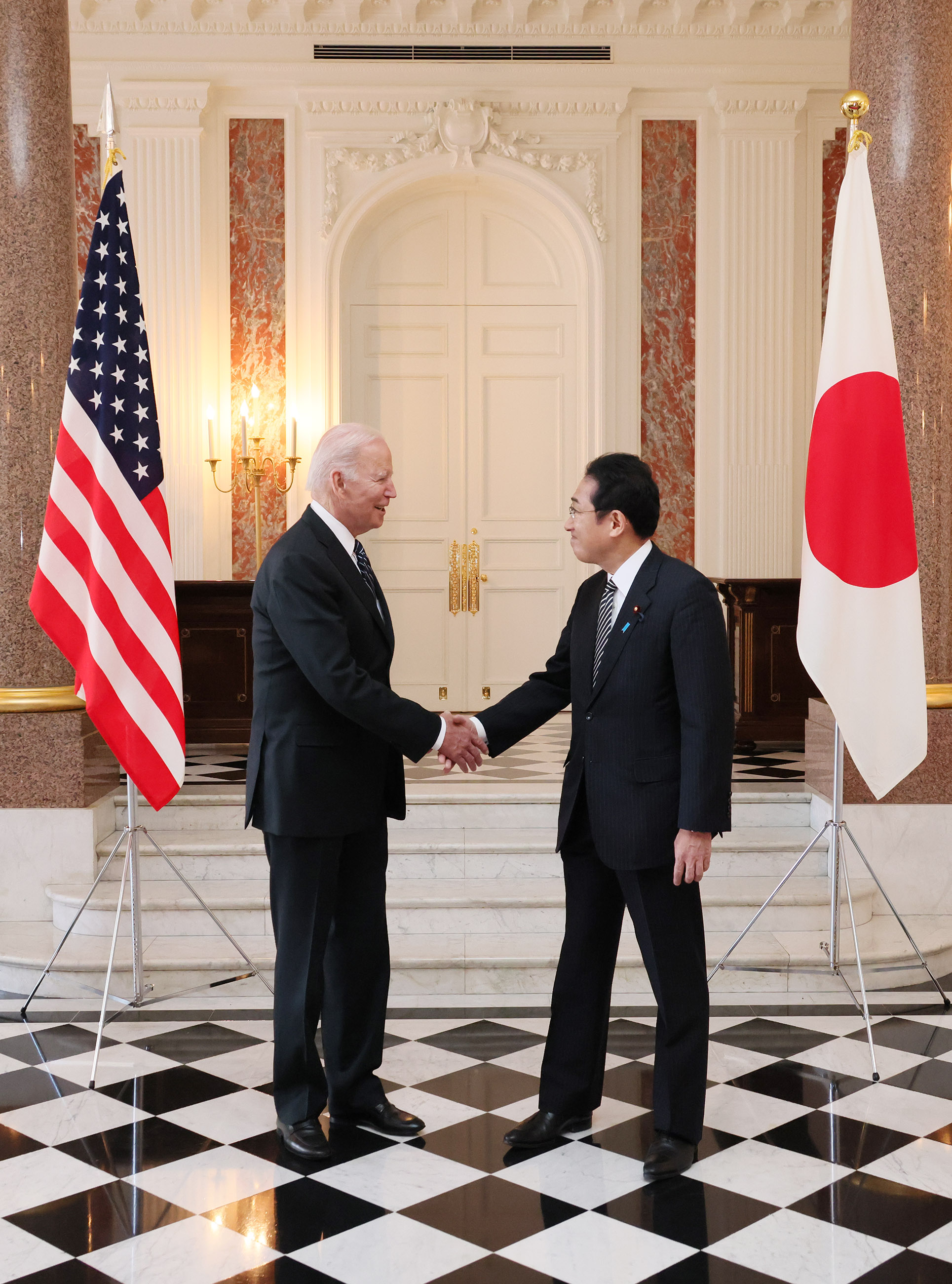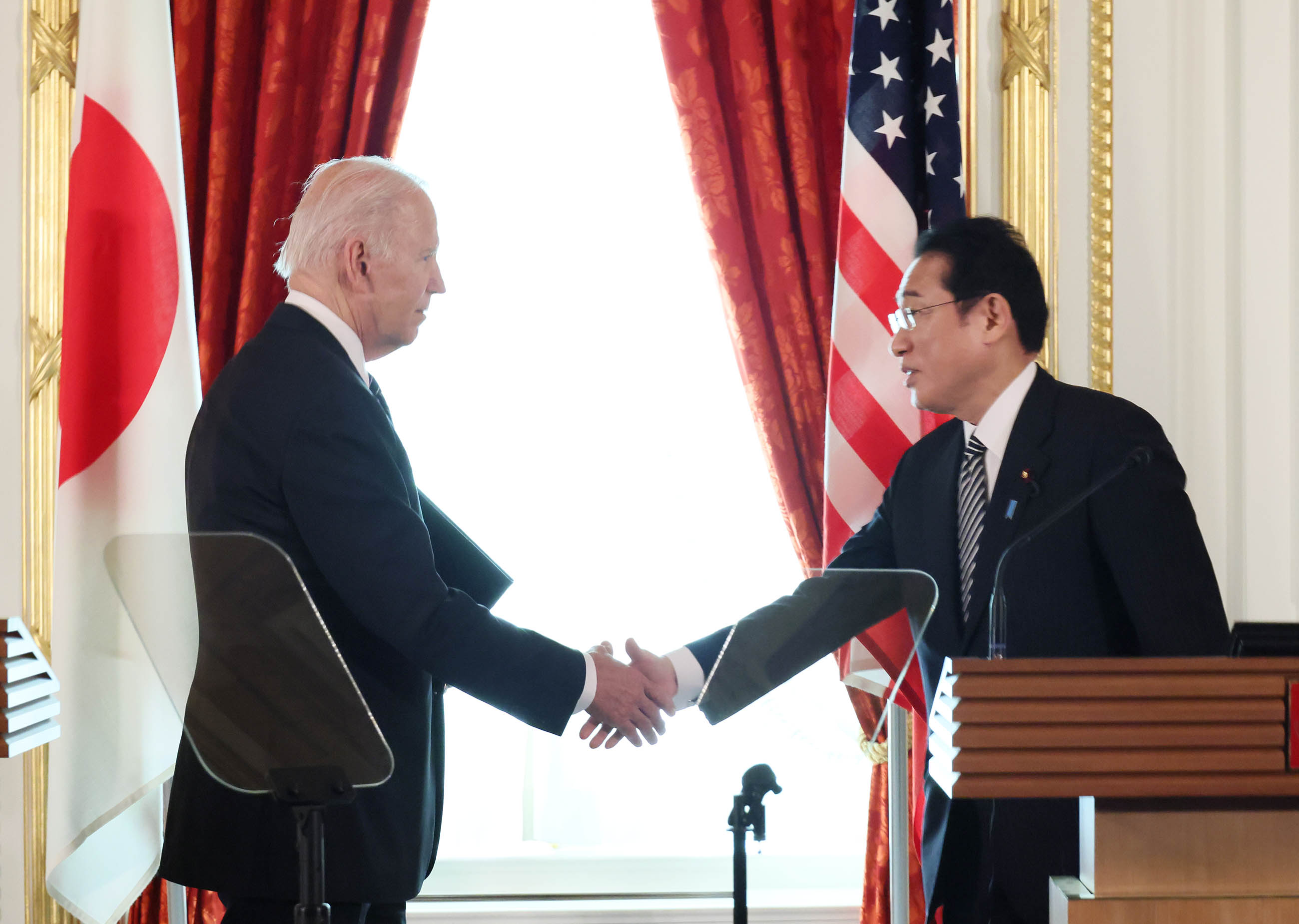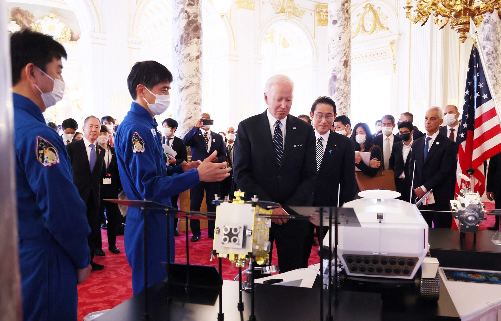 #外交・安全保障 #自由で開かれたインド太平洋 #日米首脳会談 #拉致問題 日米首脳会談等 更新日:令和4年5月23日 総理の一日 ツイート 写真撮影1 歓迎行事1 歓迎行事2 歓迎行事3 写真撮影2 写真撮影3 日米首脳会談1 日米首脳会談2 日米首脳会談3 日米宇宙協力関連展示1 日米宇宙協力関連展示2 日米宇宙協力関連展示3 日米共同記者会見1 日米共同記者会見2 日米共同記者会見3 日米共同記者会見4 拉致被害者御家族との面会1 拉致被害者御家族との面会2 拉致被害者御家族との面会3 IPEF(インド太平洋経済枠組み)関連行事1 IPEF(インド太平洋経済枠組み)関連行事2 IPEF(インド太平洋経済枠組み)関連行事3 IPEF(インド太平洋経済枠組み)関連行事4 IPEF(インド太平洋経済枠組み)関連行事5 IPEF(インド太平洋経済枠組み)関連行事6 非公式夕食会に臨む両首脳1 非公式夕食会に臨む両首脳2 総理夫人によるお点前1 総理夫人によるお点前2 総理夫人によるお点前3 関連動画開く閉じる 動画が再生できない方はこちら(政府広報オンライン) 令和4年5月23日、岸田総理は、迎賓館赤坂離宮でアメリカ合衆国のジョセフ・バイデン大統領と首脳会談等を行いました。 両首脳は、会談を行い、続いて日米宇宙協力関連展示を視察しました。その後、共同記者会見を行い、続いて拉致被害者御家族と面会しました。 次に、都内でIPEF(インド太平洋経済枠組み)関連行事に出席し、夜には、非公式夕食会を行いました。