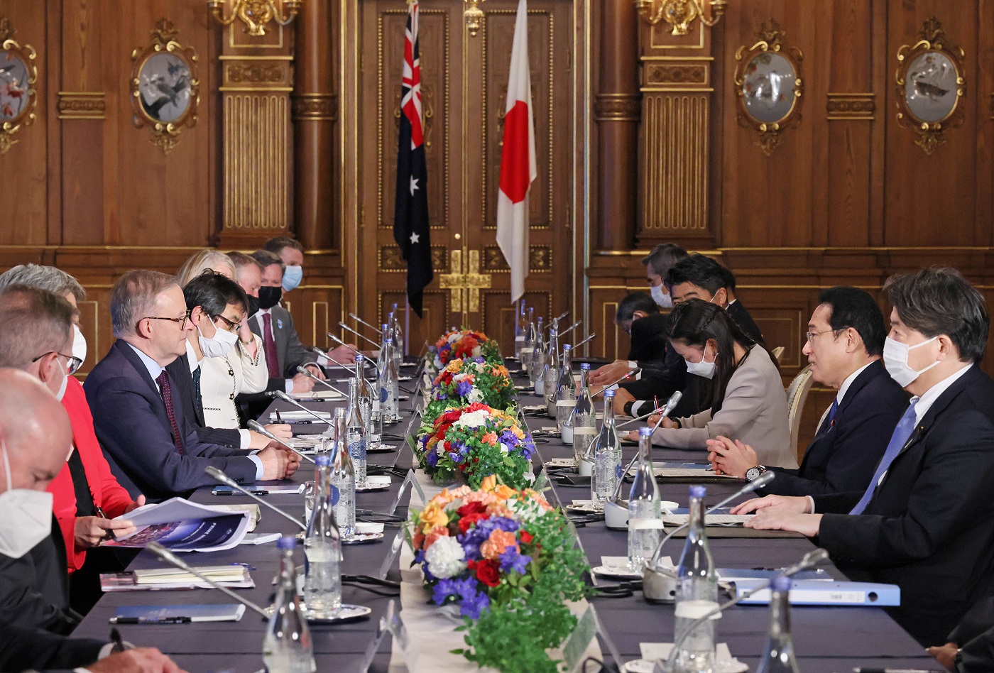 #外交・安全保障 #QUAD #自由で開かれたインド太平洋 #ウクライナ情勢 #日豪首脳会談 #日印首脳会談 日米豪印首脳会合等 更新日:令和4年5月24日 総理の一日 ツイート 各国首脳との写真撮影1 アルバニージー豪首相を出迎える岸田総理 アルバニージー豪首相との写真撮影 モディ印首相を出迎える岸田総理 モディ印首相との写真撮影 バイデン米大統領を出迎える岸田総理 バイデン米大統領との写真撮影 各国首脳との写真撮影2 各国首脳との写真撮影3 日米豪印首脳会合に臨む4首脳 日米豪印首脳会合1 日米豪印首脳会合2 日米豪印首脳会合3 日米豪印首脳会合4 日米豪印首脳会合5 日米豪印首脳会合6 日米豪印フェローシップ創設記念行事1 日米豪印フェローシップ創設記念行事2 冒頭に発言する岸田総理 記者の質問に答える岸田総理1 記者の質問に答える岸田総理2 日豪首脳会談1 日豪首脳会談2 日豪首脳会談3 日印首脳会談1 日印首脳会談2 日印首脳会談3 夕食会に臨む両首脳 鯉の餌やりをする両首脳1 鯉の餌やりをする両首脳2 関連動画開く閉じる 動画が再生できない方はこちら(政府広報オンライン) 動画が再生できない方はこちら(政府広報オンライン) 令和4年5月24日、岸田総理は、総理大臣官邸でアメリカ合衆国のジョセフ・バイデン大統領、オーストラリア連邦のアンソニー・アルバニージー首相及びインドのナレンドラ・モディ首相と日米豪印首脳会合を行い、その後、共同声明を発出しました。続けて、日米豪印フェローシップ創設記念行事に出席しました。 次に、日米豪印首脳会合議長国記者会見を行い、その後、迎賓館赤坂離宮で、アルバニージー豪首相と会談し、続けて、モディ印首相と会談及び夕食会を行いました。