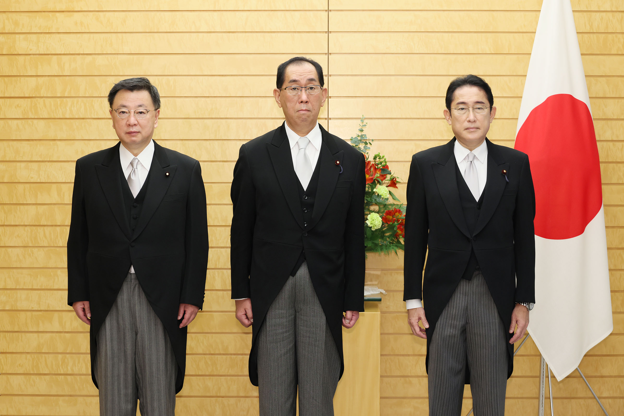 補職辞令交付(大臣) 更新日:令和4年11月21日 総理の一日 ツイート 松本大臣と写真撮影に臨む岸田総理1 松本大臣と写真撮影に臨む岸田総理2 松本大臣と写真撮影に臨む岸田総理3 令和4年11月21日、岸田総理は、宮中における認証式の後、総理大臣官邸に戻り、松本剛明国務大臣に対して総務大臣の辞令交付を行い、その後、記念撮影を行いました。