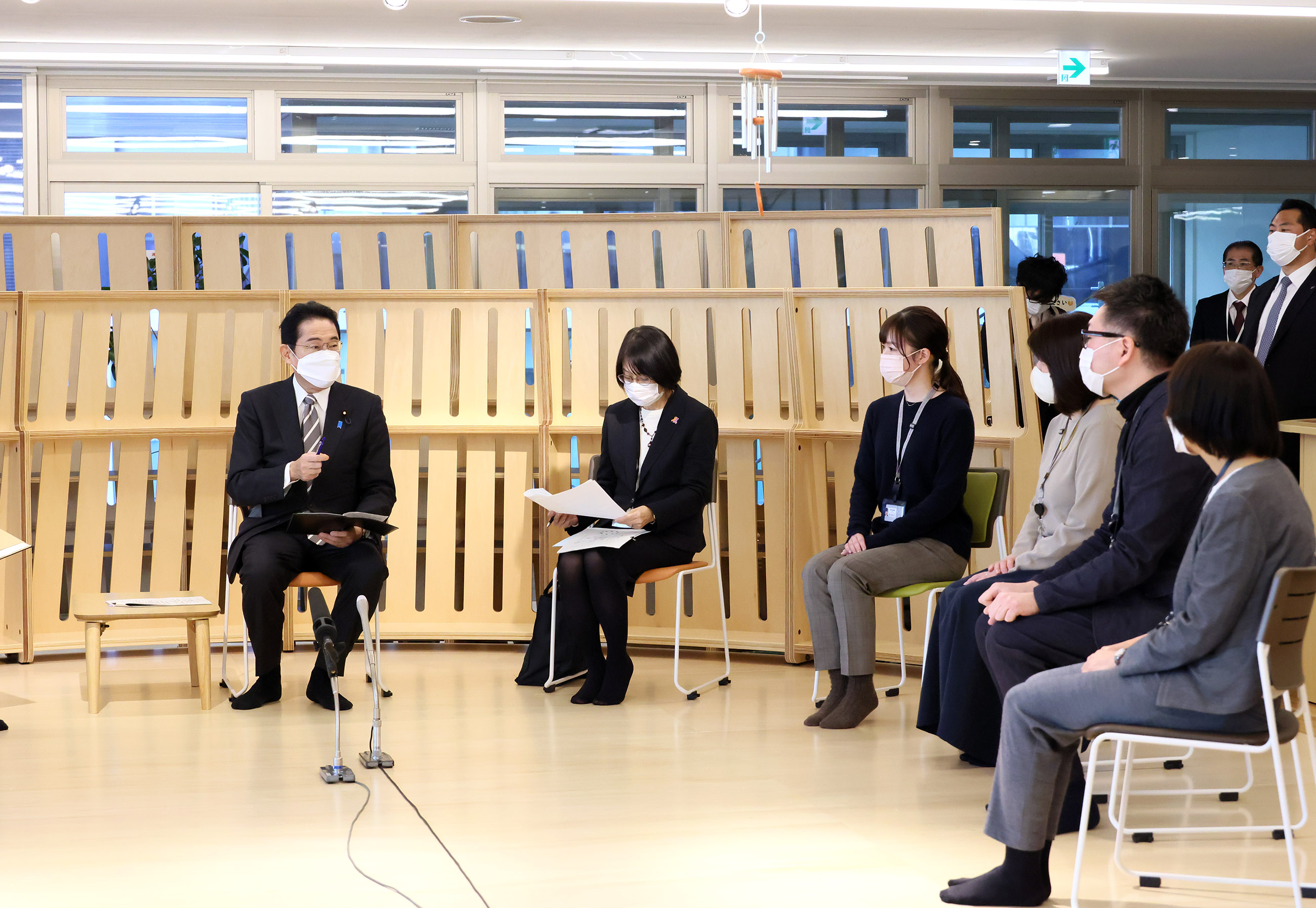 #こども・子育て政策 子育て施設職員との車座対話 更新日:令和4年12月26日 総理の一日 ツイート 車座対話で話をする岸田総理1 車座対話で話をする岸田総理2 車座対話で話をする岸田総理3 車座対話で話をする岸田総理4 車座対話で話をする岸田総理5 車座対話で話を聞く岸田総理1 車座対話で話を聞く岸田総理2 車座対話で話を聞く岸田総理3 視察を行う岸田総理1 視察を行う岸田総理2 視察を行う岸田総理3 視察を行う岸田総理4 関連動画開く閉じる 動画が再生できない方はこちら(政府広報オンライン) 令和4年12月26日、岸田総理は、都内で子育て施設職員との車座対話を行った後、施設の視察を行いました。 その後、本日の車座対話について会見を行いました。